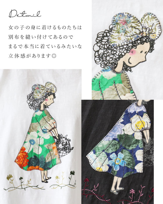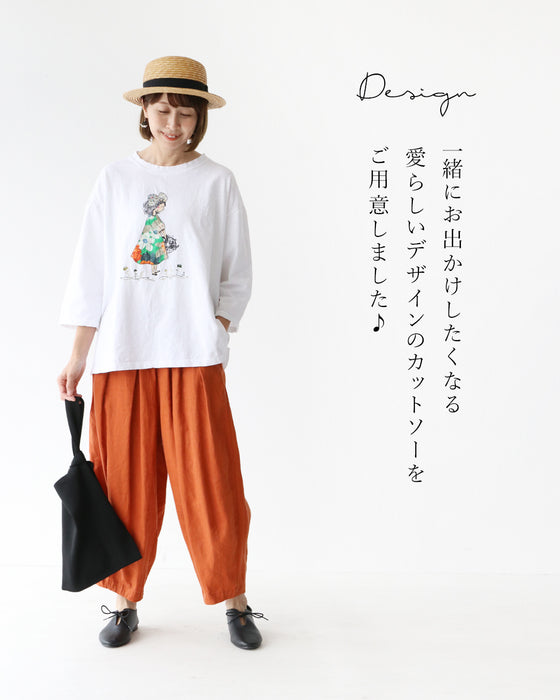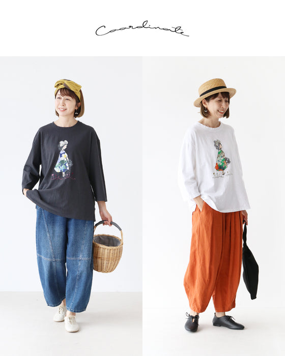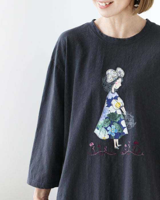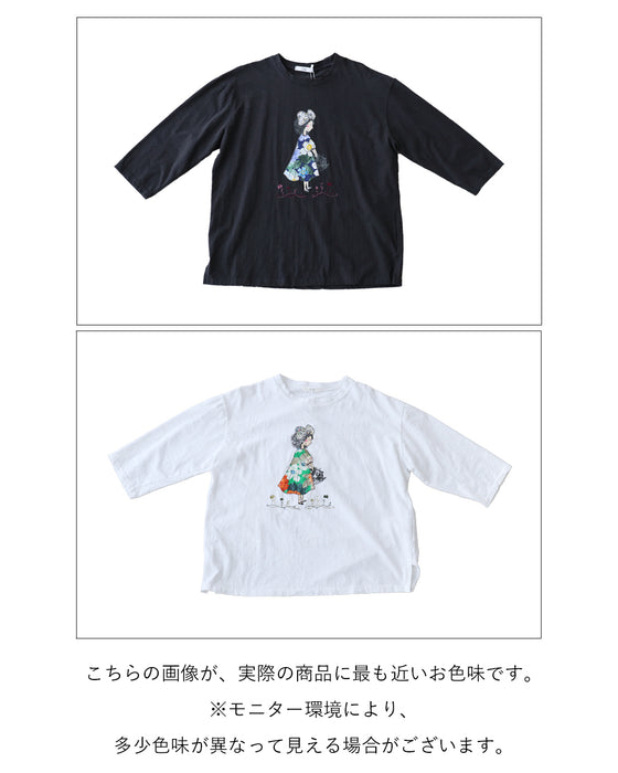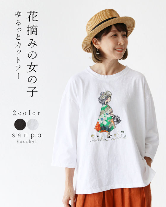 (7分袖)花摘みの女の子ゆるっとカットソー