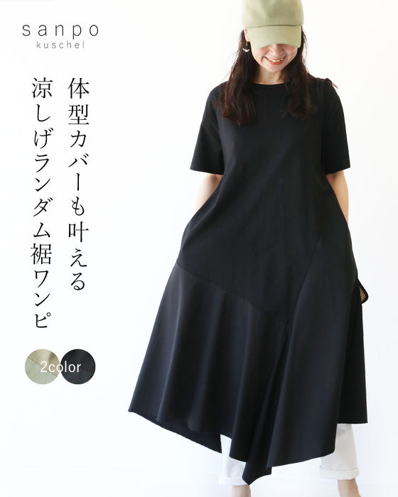 (全2色)体型カバーも叶える涼しげランダム裾ワンピ
