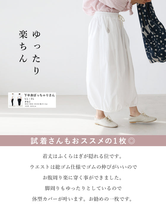 脚周りもゆったりとしているので体型カバーが叶います。