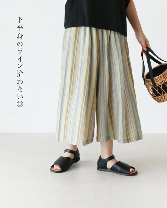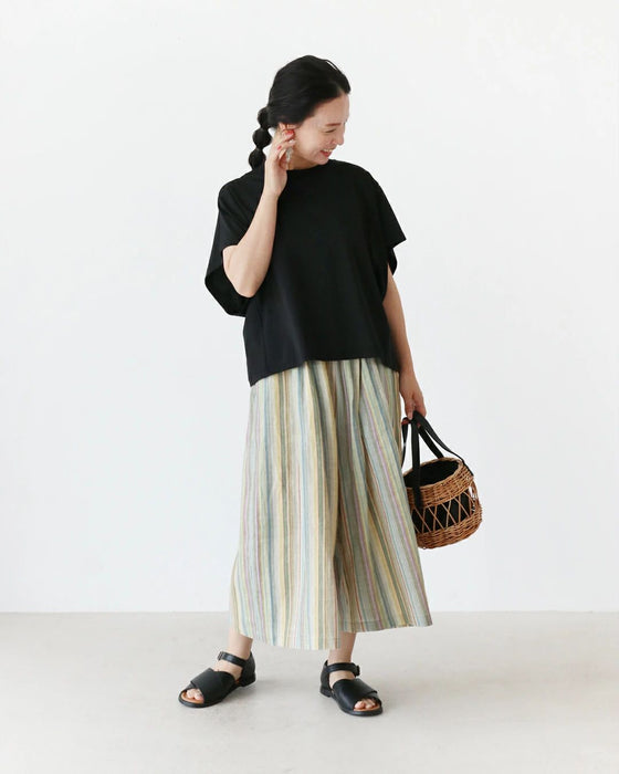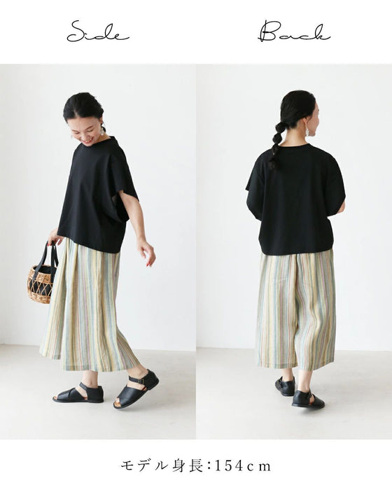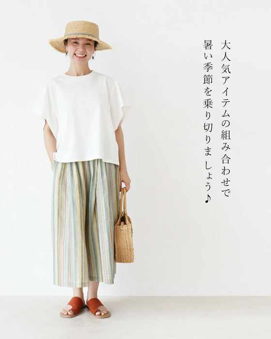 〔涼しい袖カットソー+リネン100%虹色パンツ〕