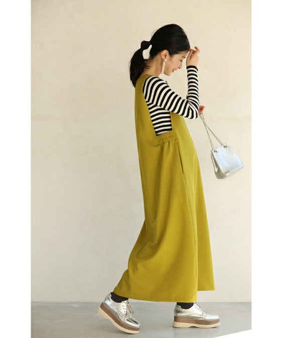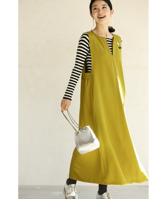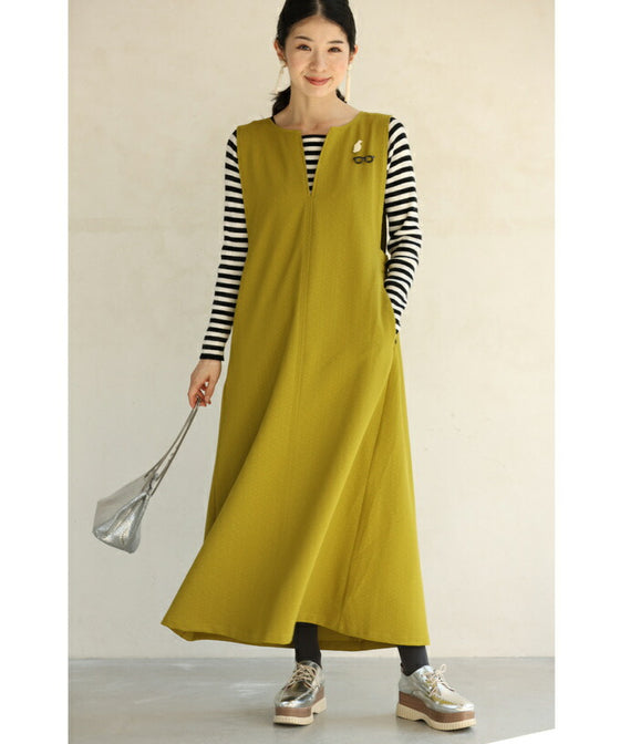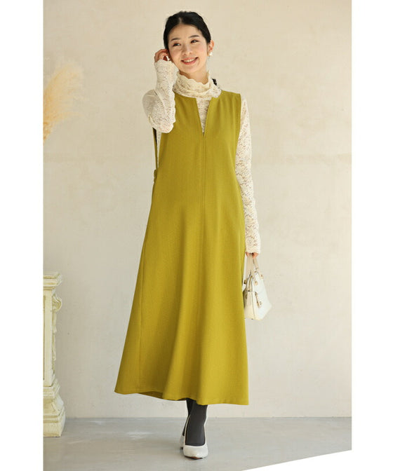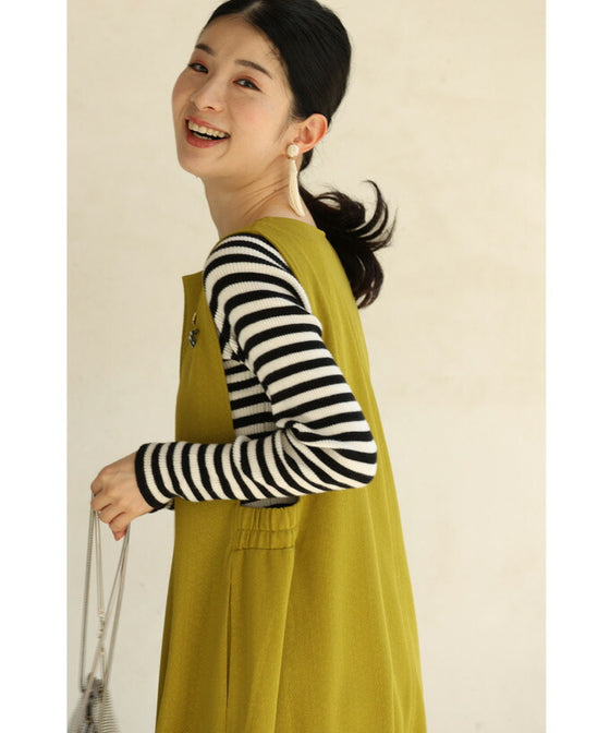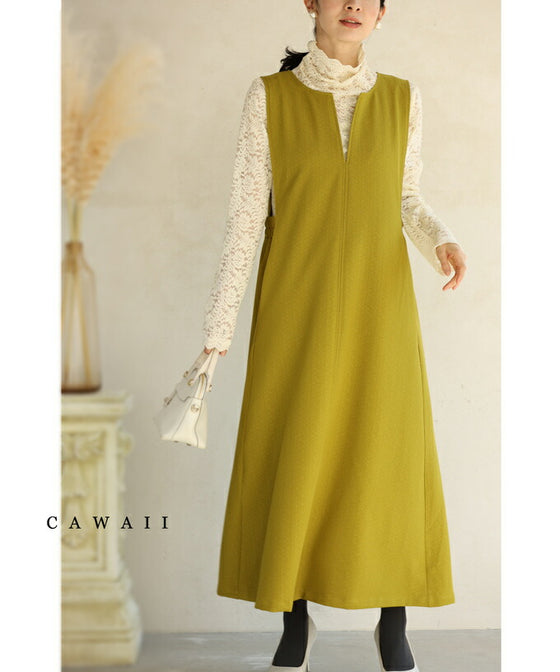 Since it is a solid color, you can freely mix and match it with the clothes underneath. It is a familiar dress, so it blends in well with a subdued color.