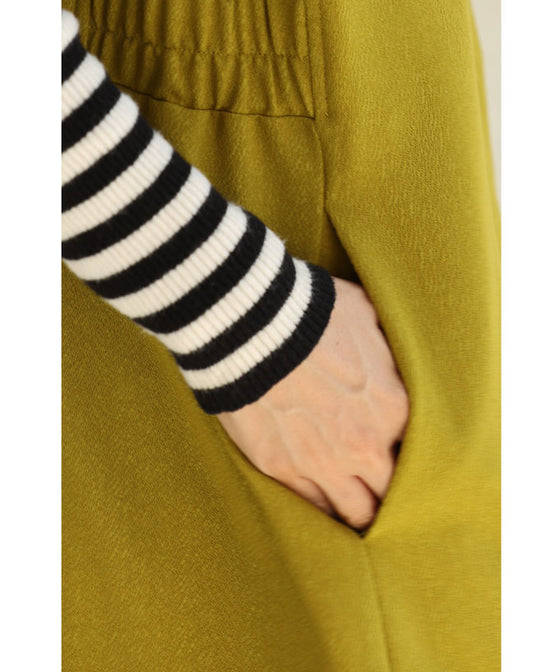 A long dress with a slit neck in ginkgo green