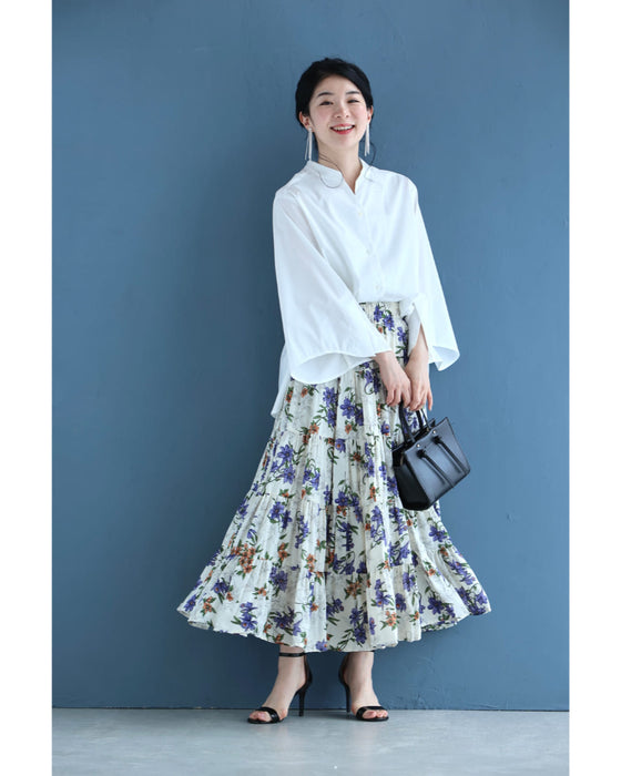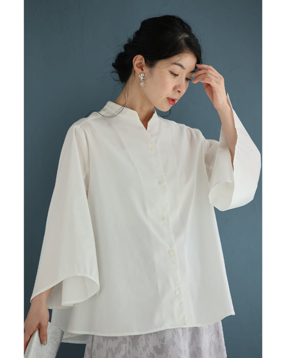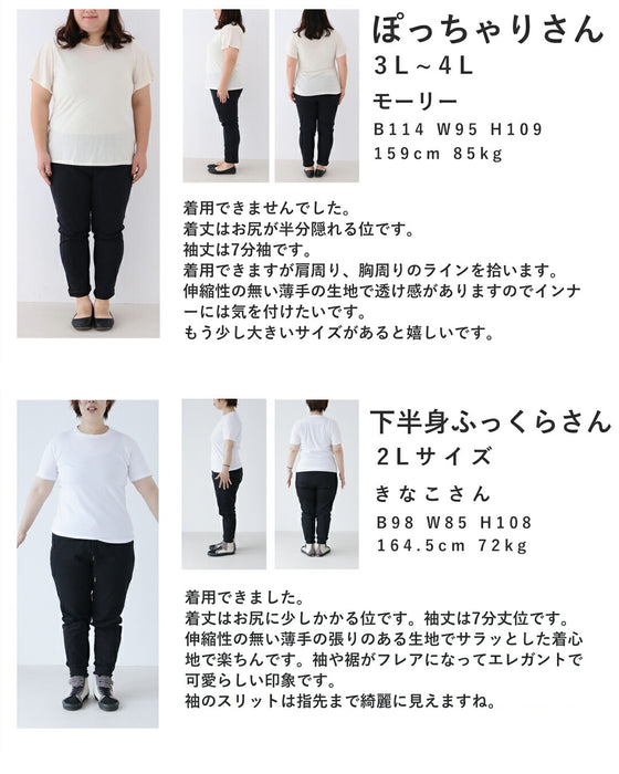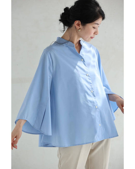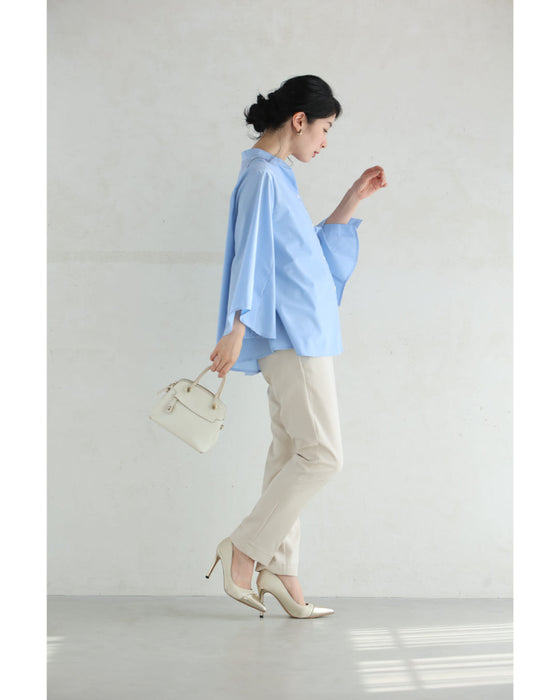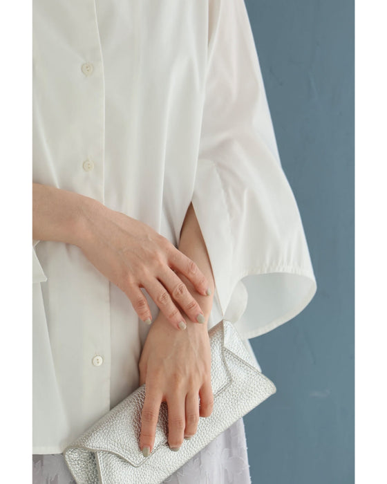 柔らかな曲線を描くベルスリーブにスリットが入ることで、手元に軽やかな動きが加わり、ほんのり肌見せも叶って女性らしい抜け感が生まれます。