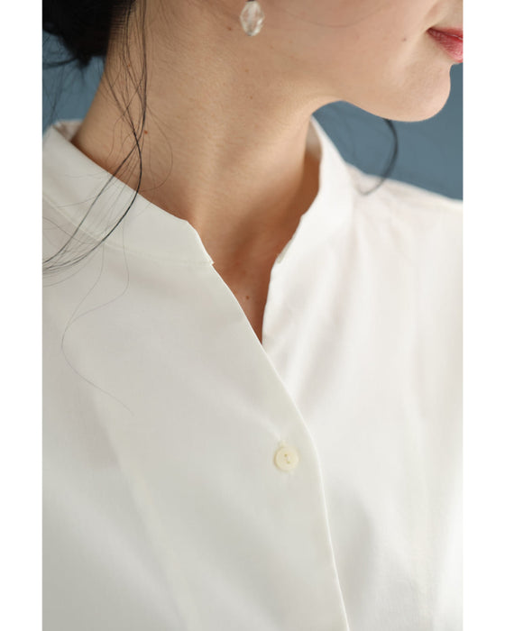 首元がすっきり見えて、抜け感もあって大人のこなれ感がぐっとアップするデザインです。Vネック風の開きでデコルテがきれいに見え、抜け感+きちんと感のバランスが◎