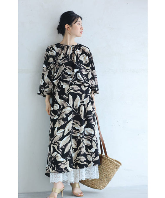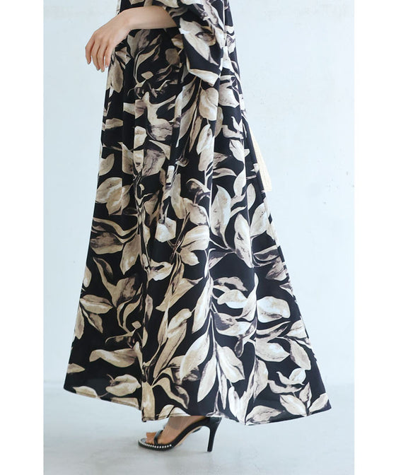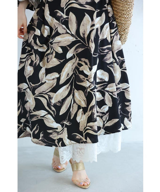 Stylish leaf pattern long dress