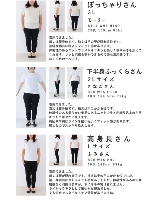 ■ Elegant with sparkling knit fabric <br>The sparkling knit fabric sparkles beautifully in the light, making it an item suitable for a special occasion. Although it has a simple design, the sparkling brushed details add an accent and add a touch of glamour to any outfit.