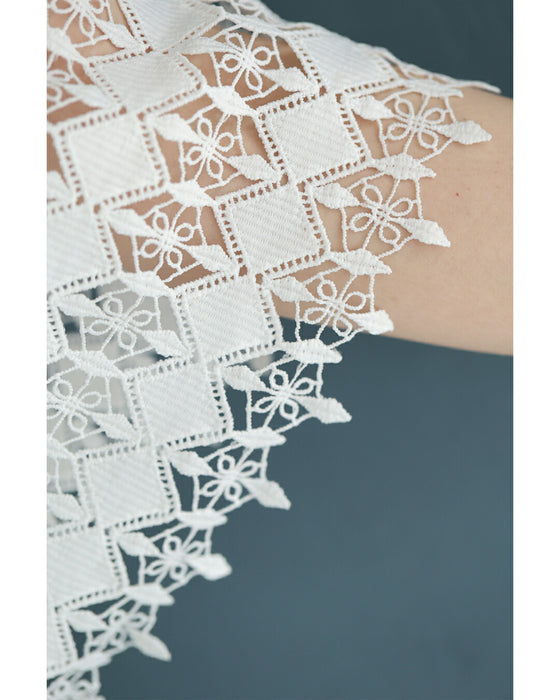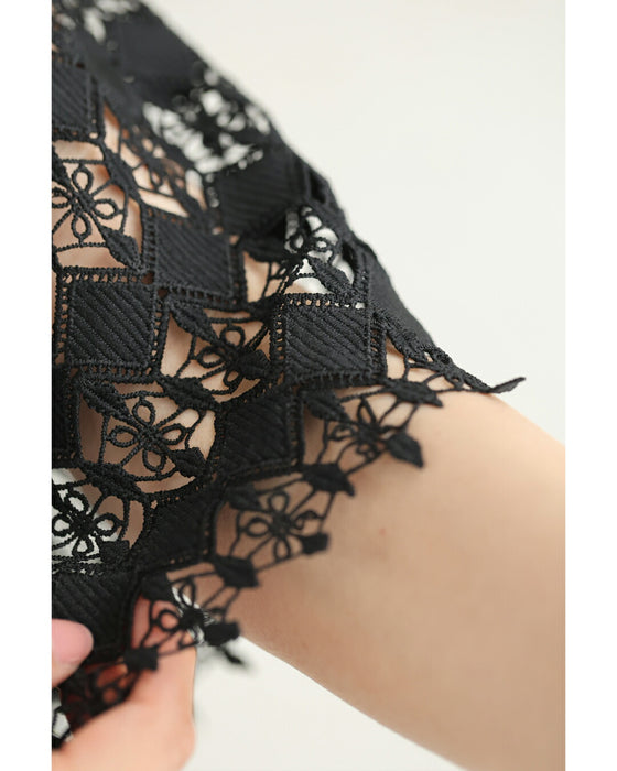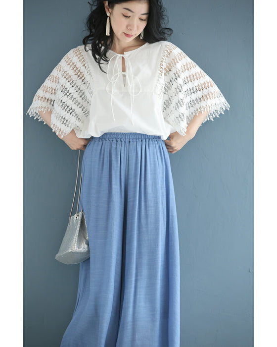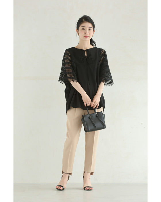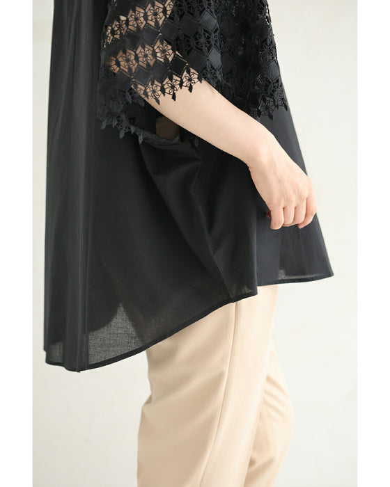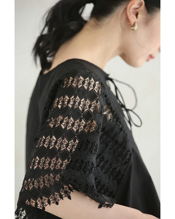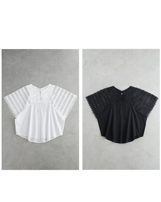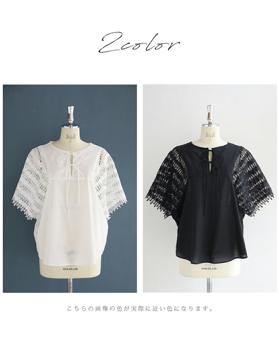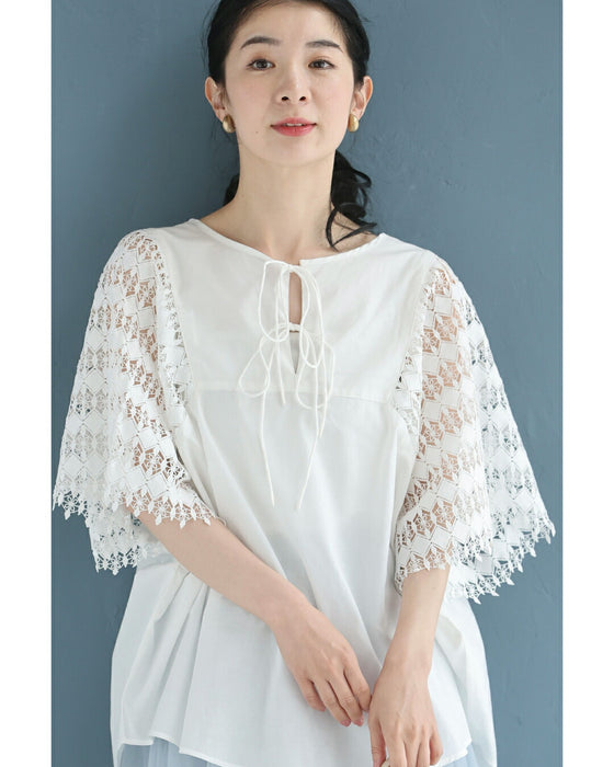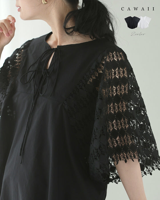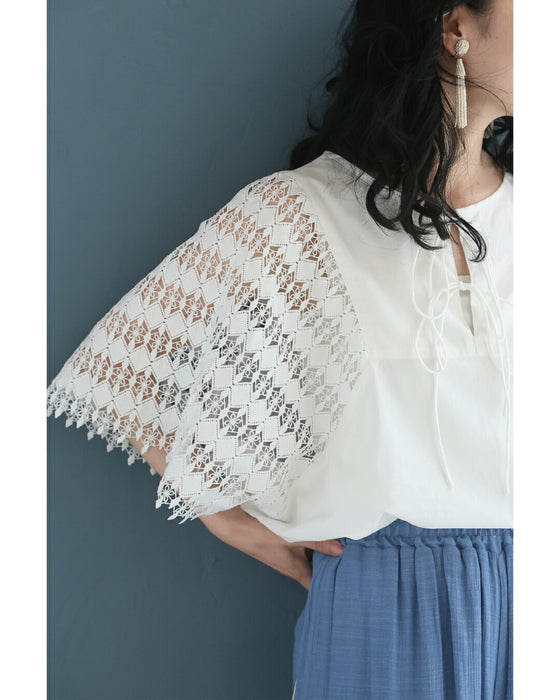 煌めくようなダイヤカットレースのゆったり袖ブラウストップス