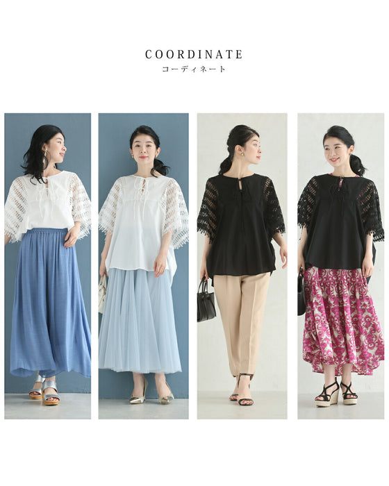 涼しげな透け感が魅力のレース袖は、風を通しつつも気になる二の腕を上品にカバーし。風通し抜群のレース袖で、体型カバーも美しく涼やかで華やか、気になる腕もしっかり隠せるレース×ゆったり袖で、大人の“隠しながら魅せる”夏トップス