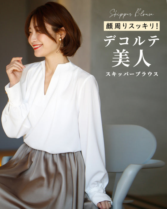 Clean around the face! Beautiful décolletage skipper blouse