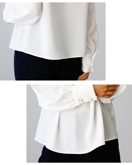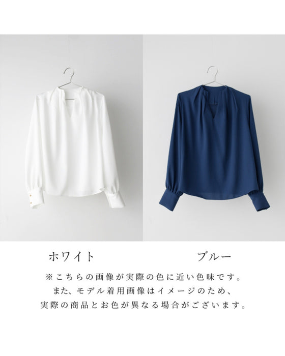 Tops, blouses, skipper blouses, 3D collar, tucks, figure-covering, elegant, clean, simple, plain, stylish, white, blue, long sleeves, buttons, loose fit, beautiful décolletage, fashion, women's, Ehre style, style, Ehre style, OK for petite people, Ehrestyle, free size