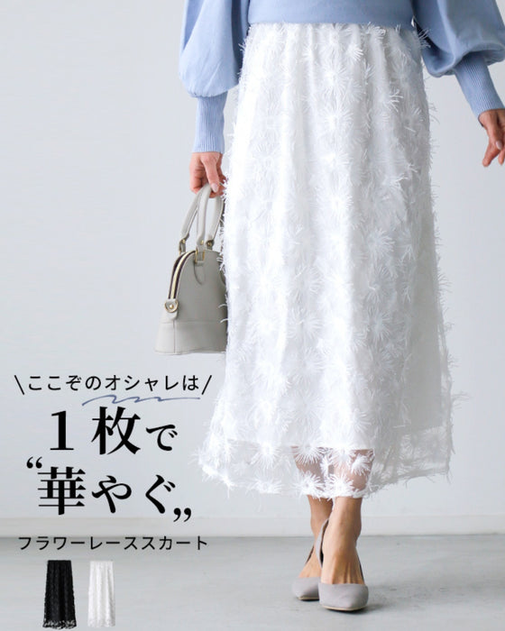 A single piece that will make you look stylish on any occasion! Flower lace skirt