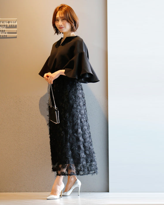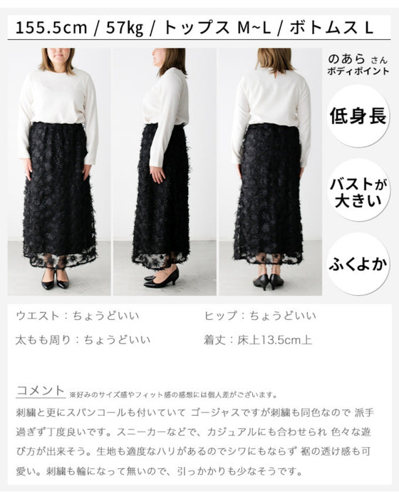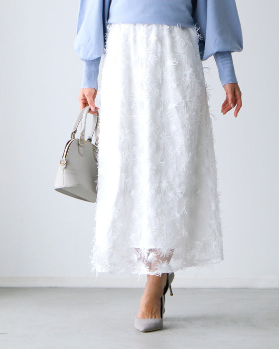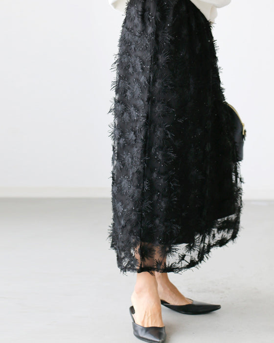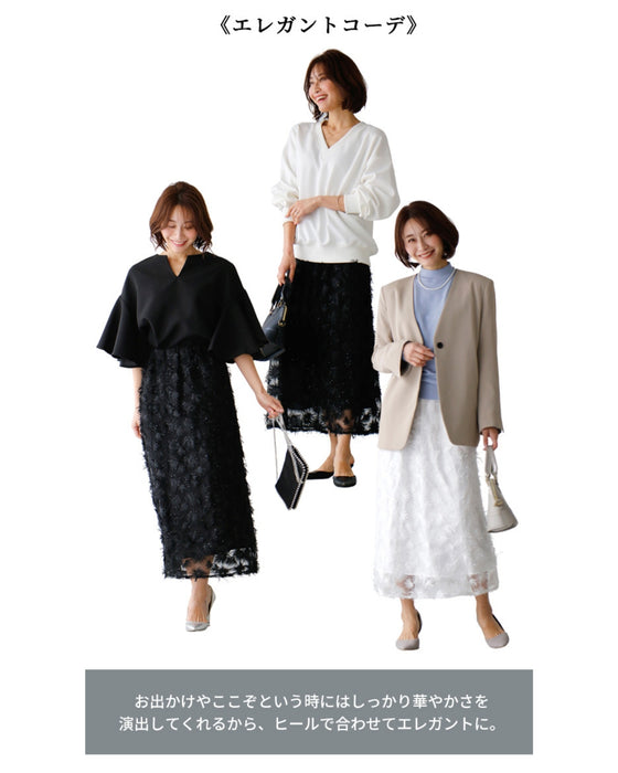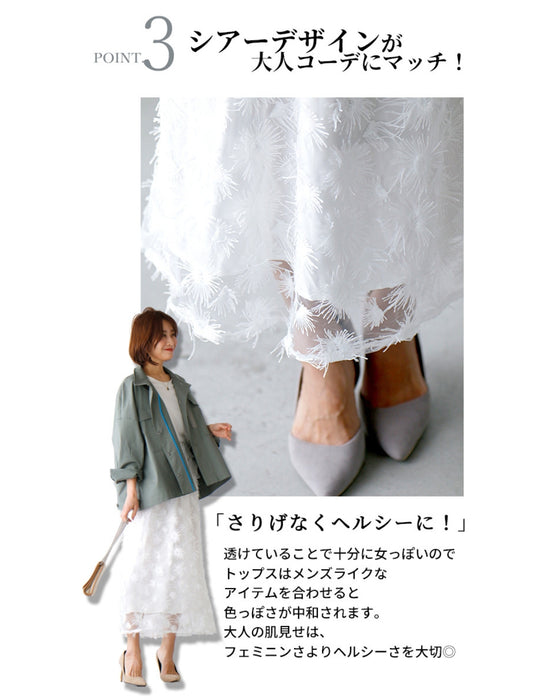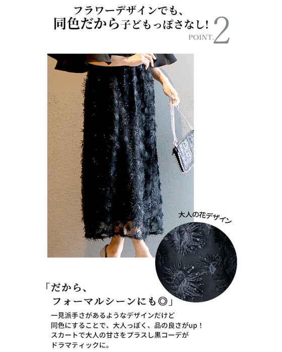 Skirt, fringe skirt, flower, sheer, transparent, floral motif, lace, tight, all-elastic, formal, black, white, black, white, women's, Ehre style, style, Ehre style, petite, Ehrestyle, free size