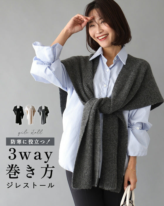Scarf, knit scarf, stole, knit, voluminous scarf, cold protection, warm, large size, black, ivory, charcoal gray, black, white, gray, winter, free size, women's fashion, Ehre style, style, Ehre style, petite, Ehrestyle