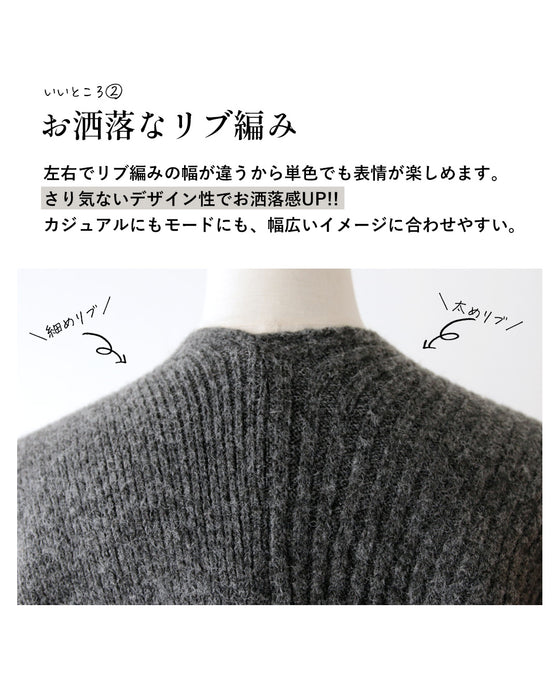 ●The ribbing is different in thickness on the left and right sides. The width of the ribbing is different on the left and right sides, so you can enjoy the look even with a single color. It is easy to match with a wide range of images, from casual to modern.