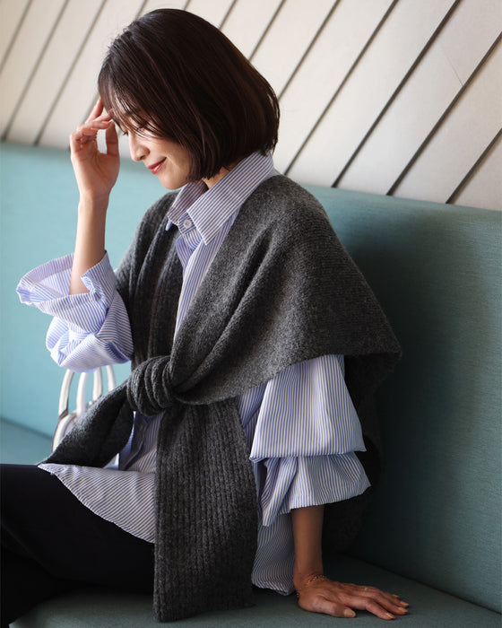 The best of both a scarf and a stole! Design introduction: Stole → Wide, large-sized scarf to wear over the shoulders → Thick and warm
