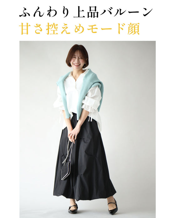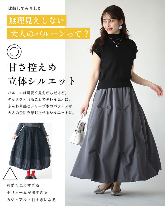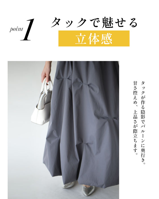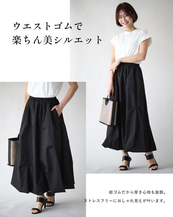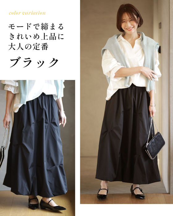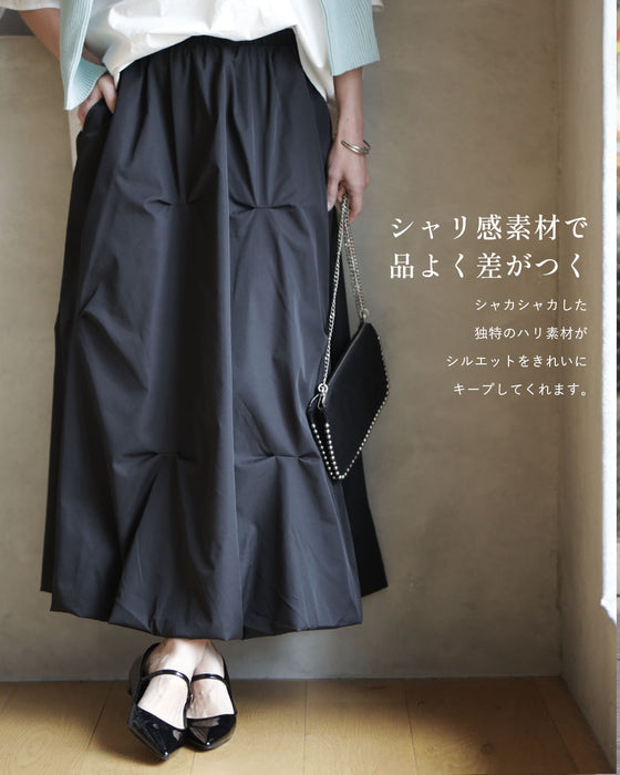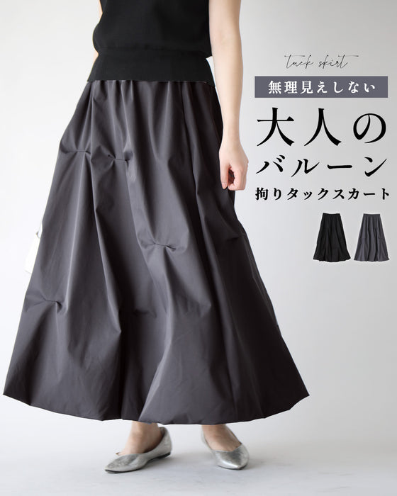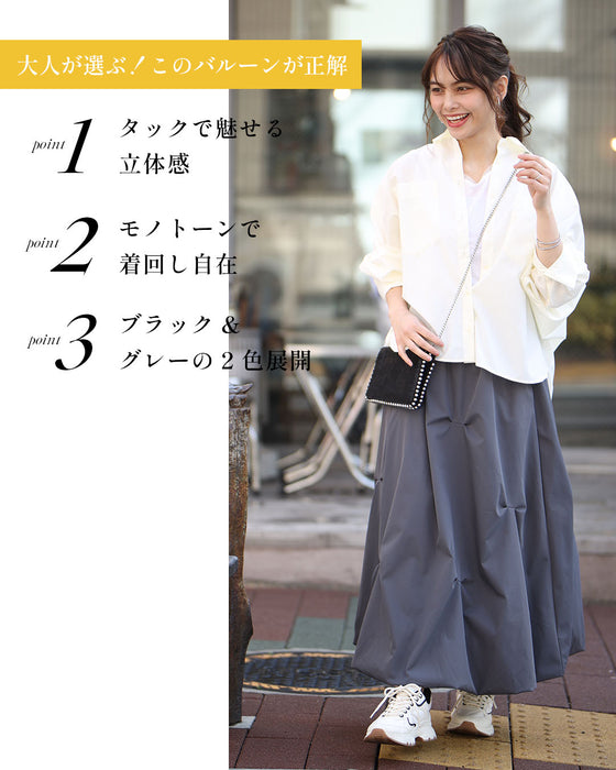 スカート ロングスカート バルーン タック 膝下 マキシ ロング ボリューム ゆったり 体型カバー 総ゴム ブラック グレー Black Gray 黒 灰 カワイイ お洒落 カジュアル 春 夏 秋 フリーサイズ レディース ファッション Ehre style スタイル エーレスタイル