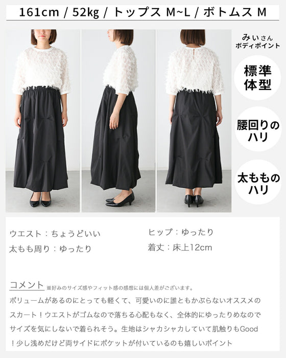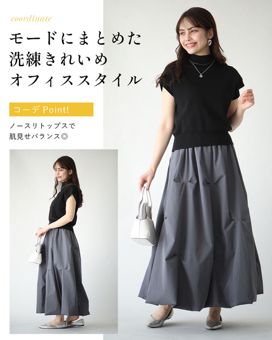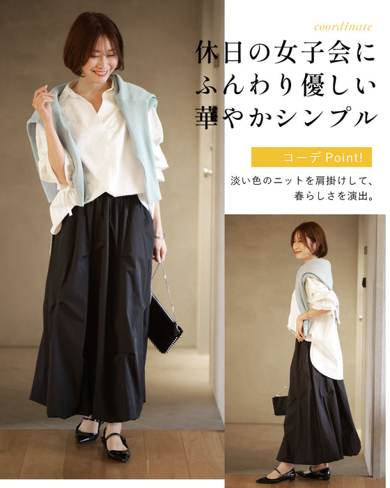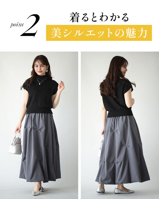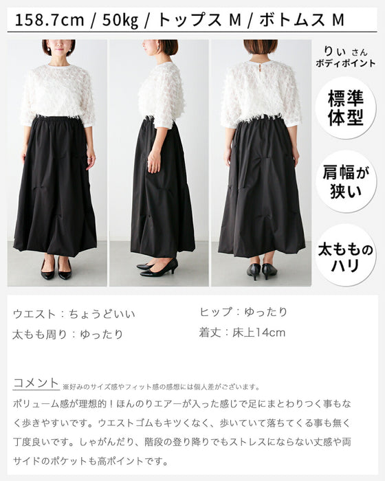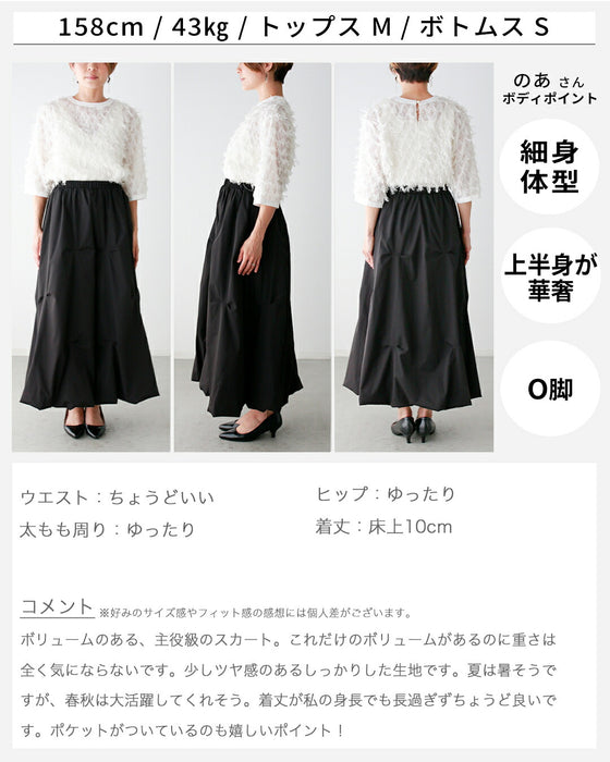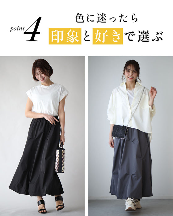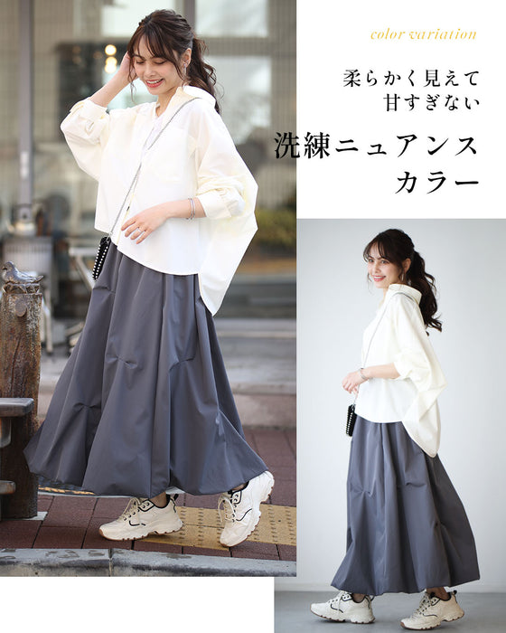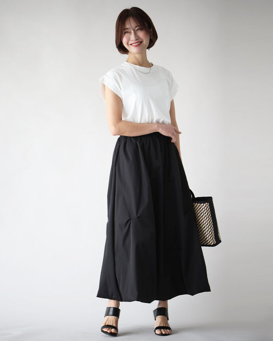 スカート ロングスカート バルーン タック 膝下 マキシ ロング ボリューム ゆったり 体型カバー 総ゴム ブラック グレー Black Gray 黒 灰 カワイイ お洒落 カジュアル 春 夏 秋 フリーサイズ レディース ファッション Ehre style スタイル エーレスタイル