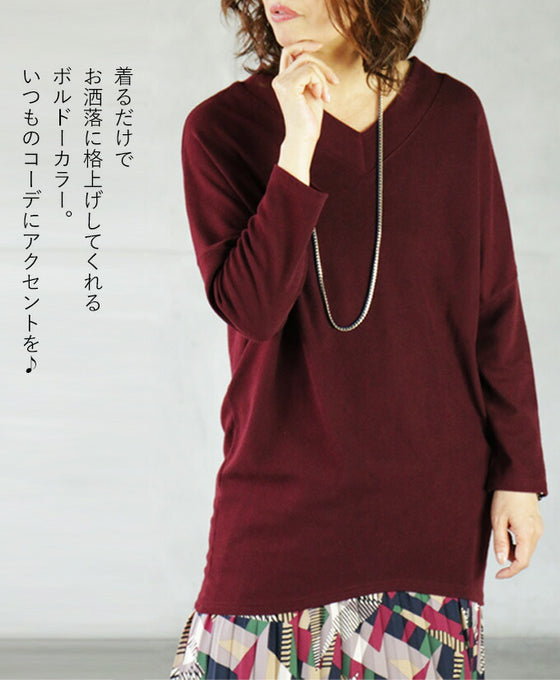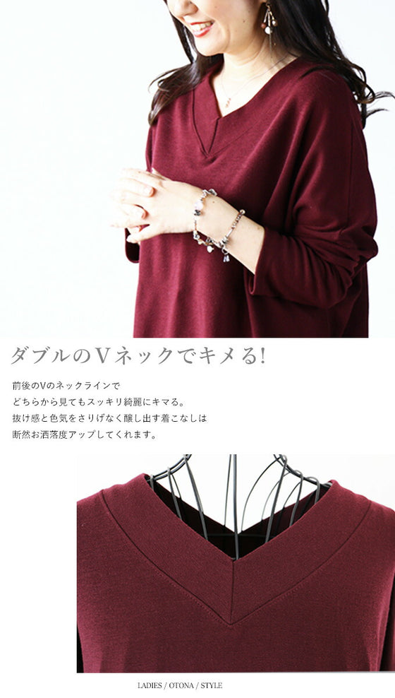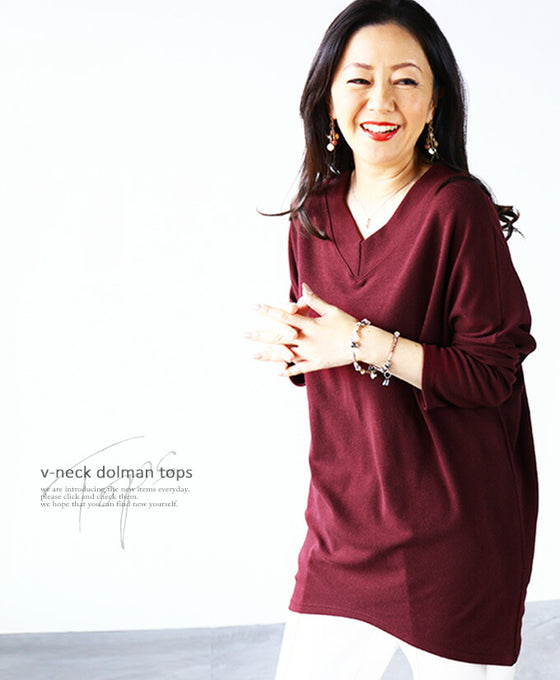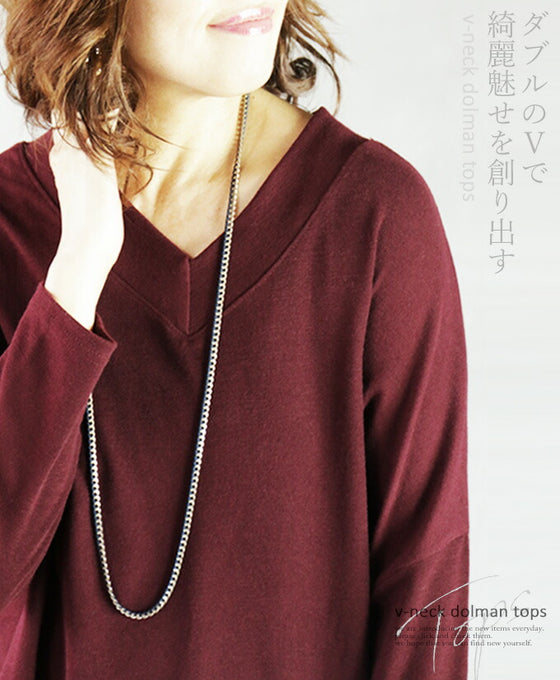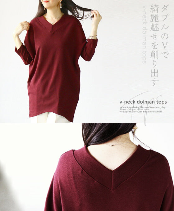 A V-neck dolman top with a double V for a beautiful look (wine red)