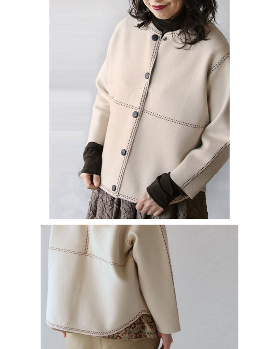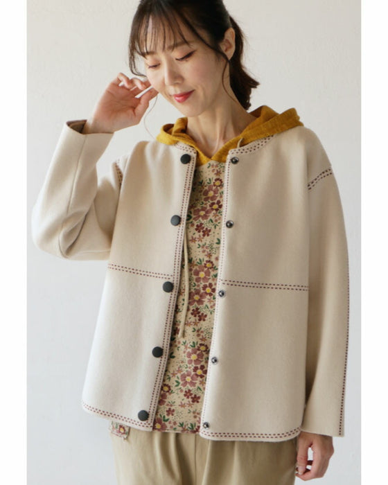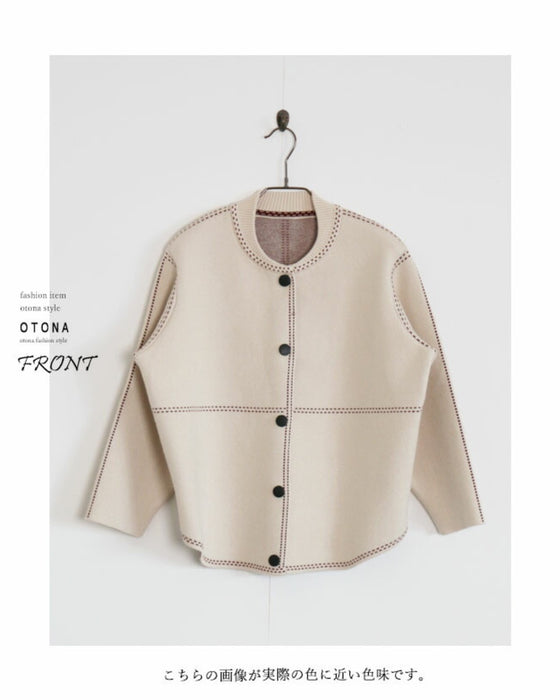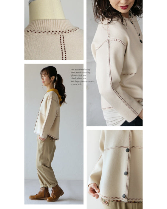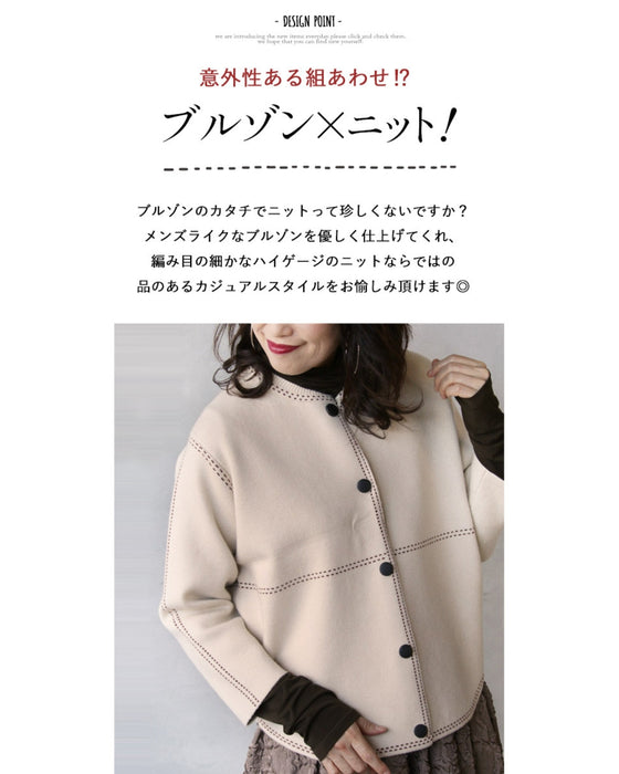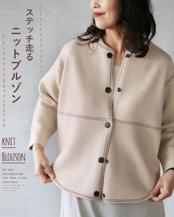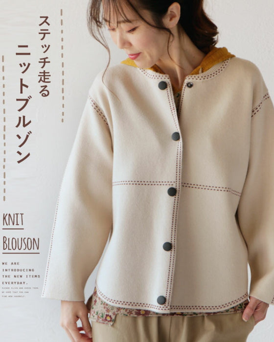 Stitched knit blouson "Ivory"