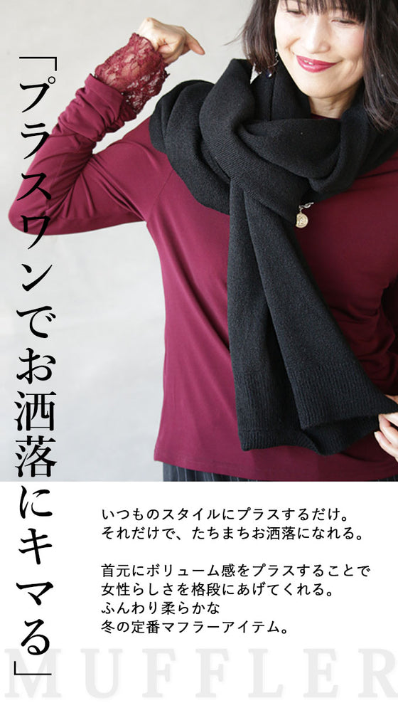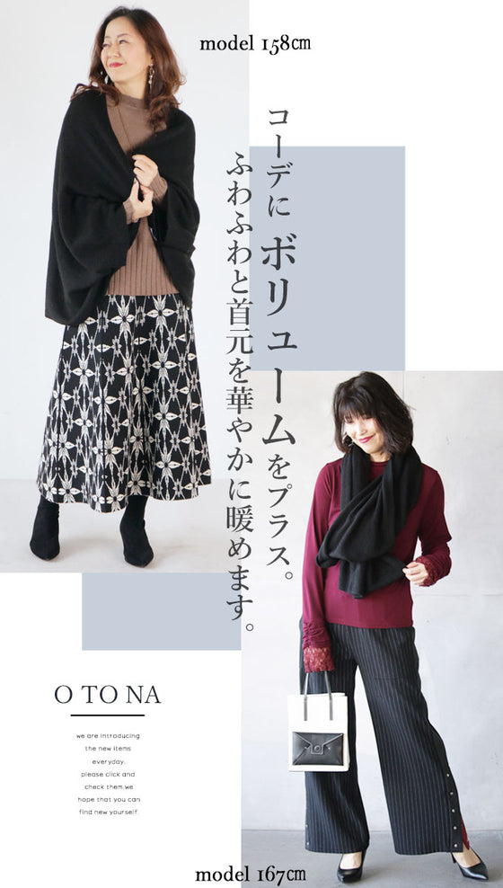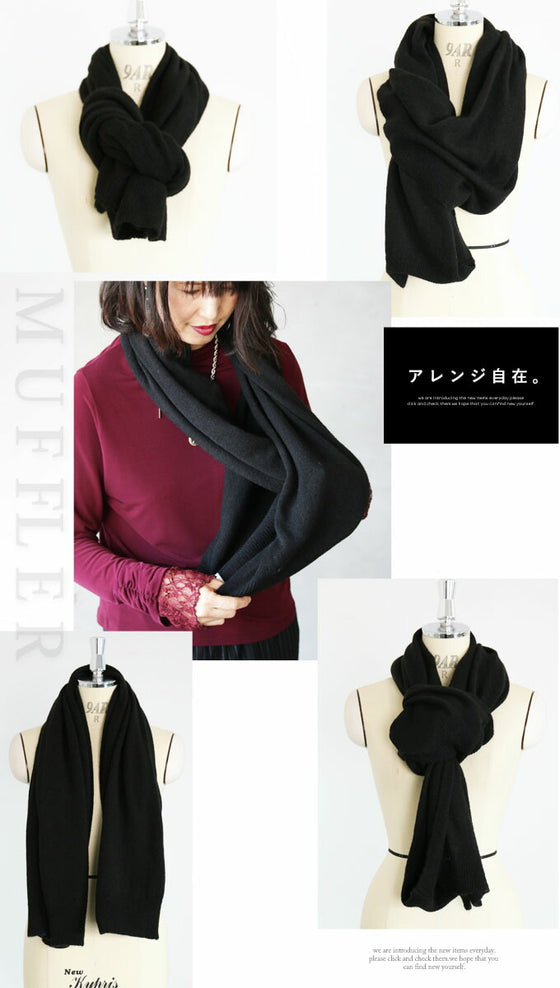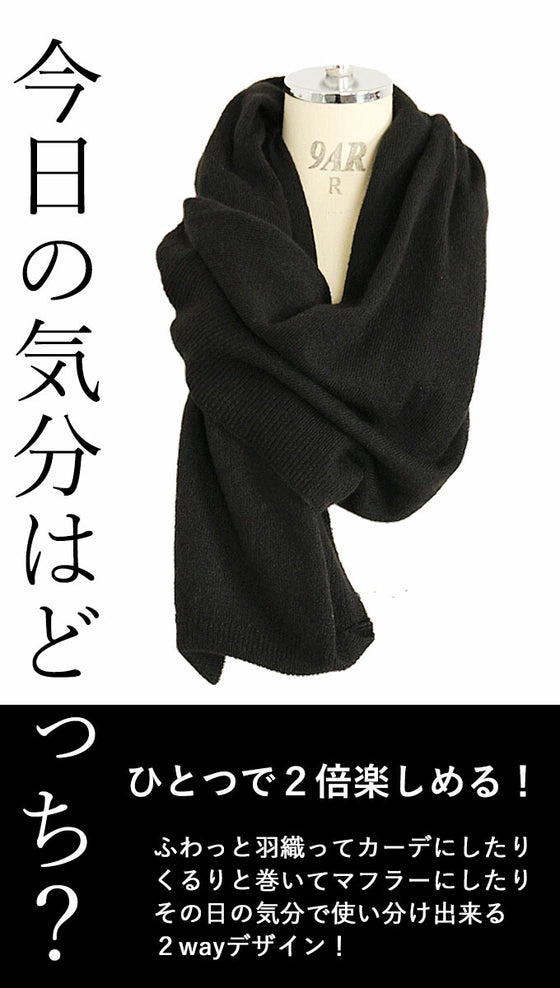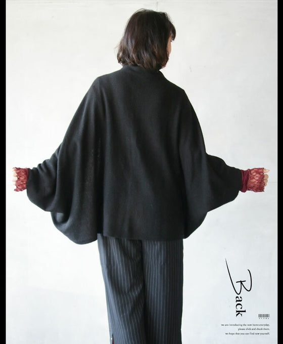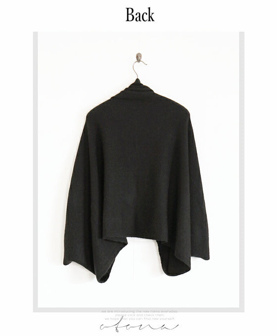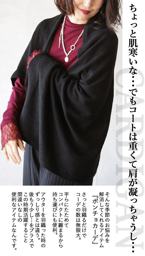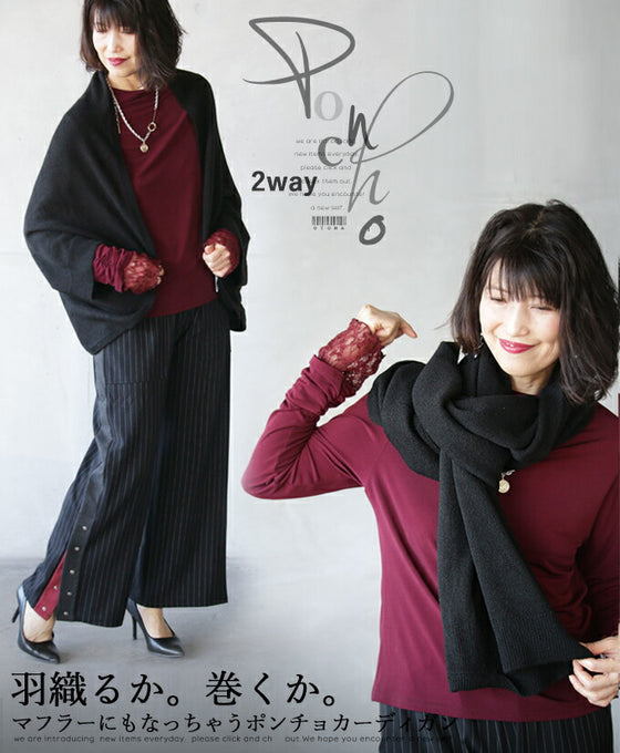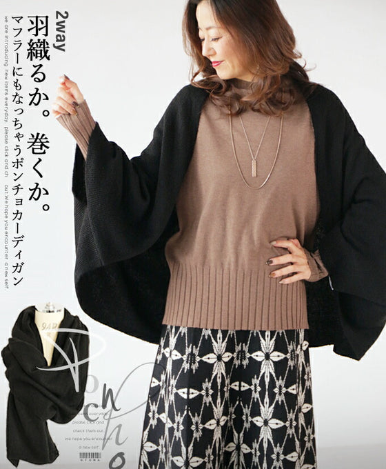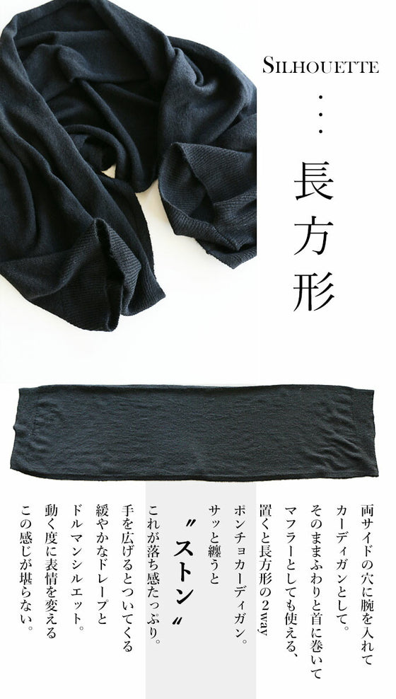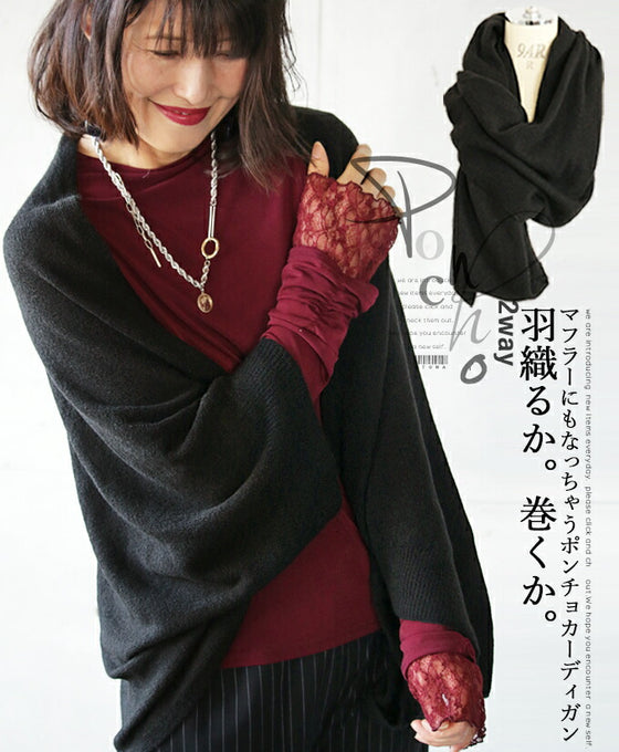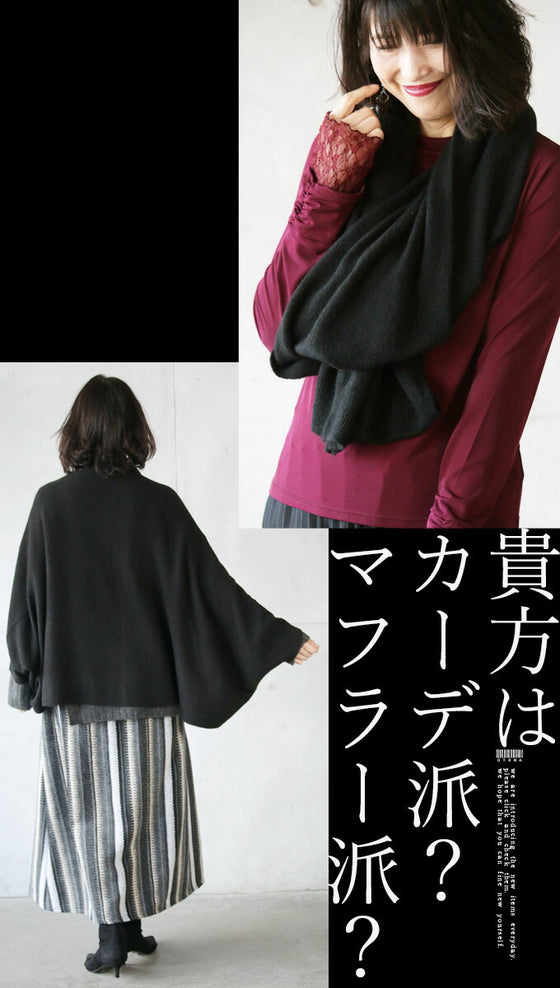 A poncho cardigan that can be worn as a wrap or muffler (Black)