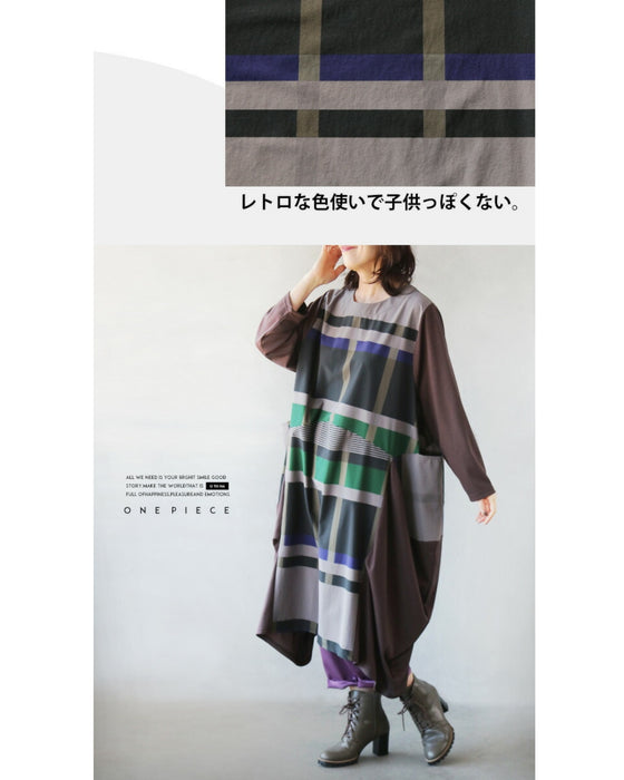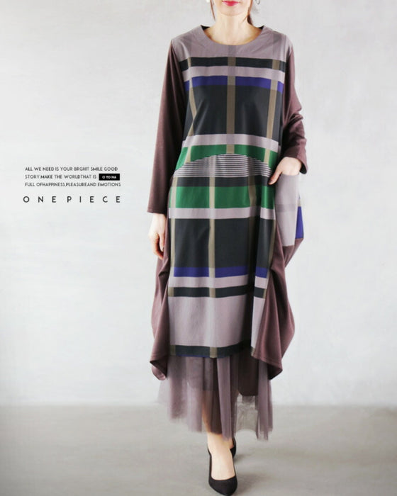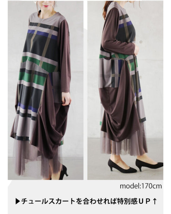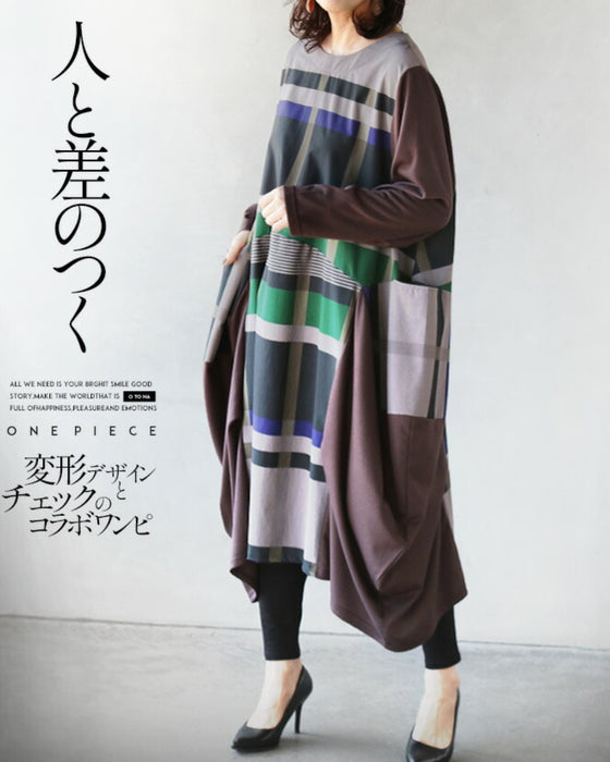 A collaboration dress with a check pattern and a unique design that stands out from the crowd