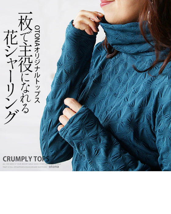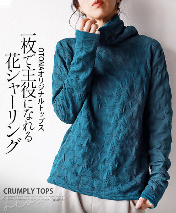 otona original tops: Floral shirring that can be the centerpiece of your outfit (blue)