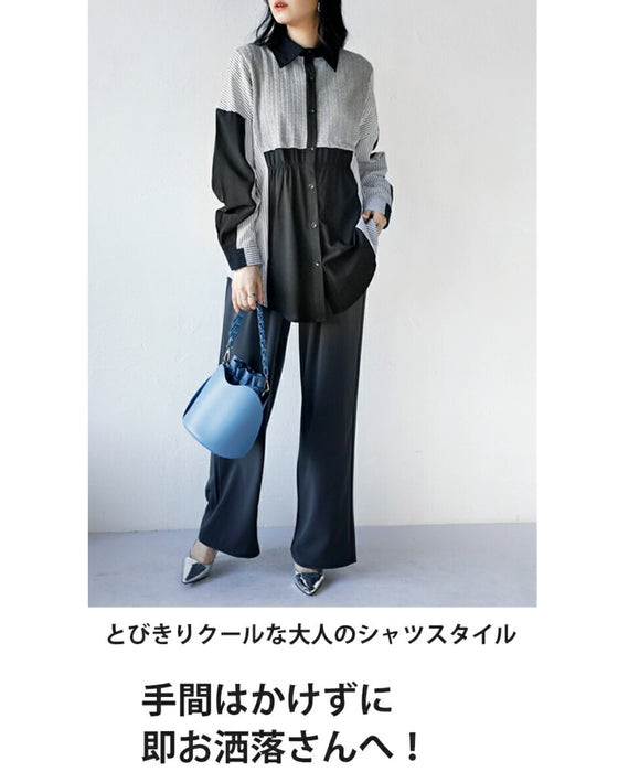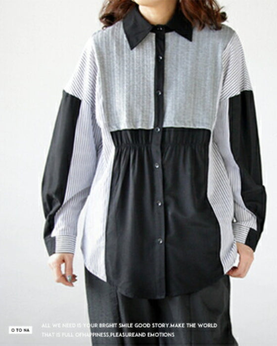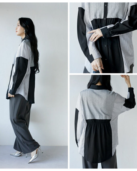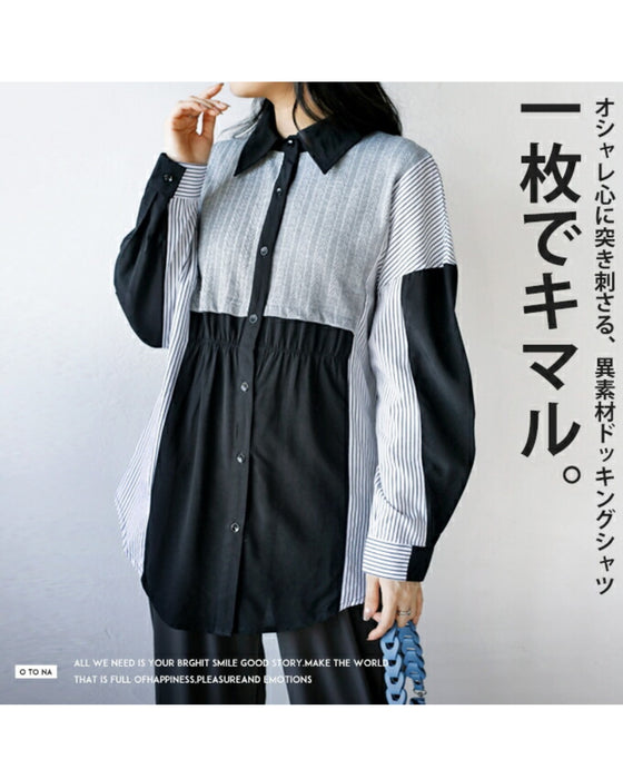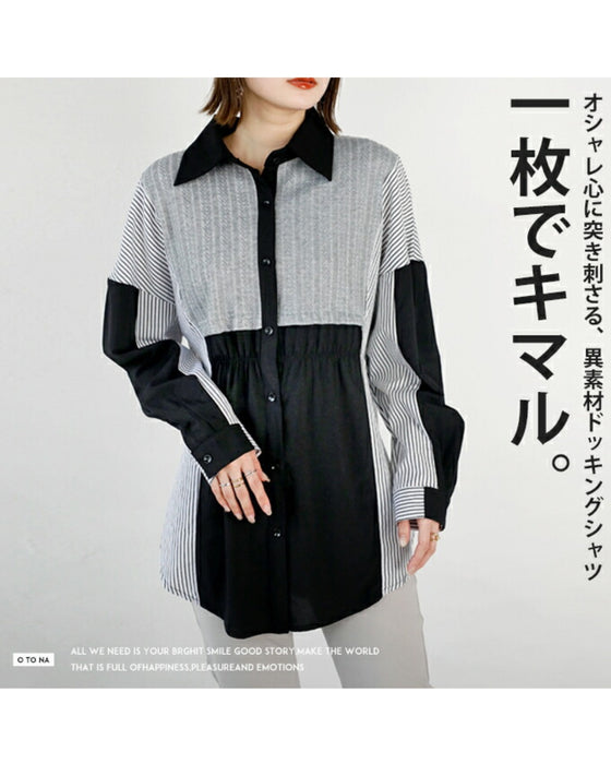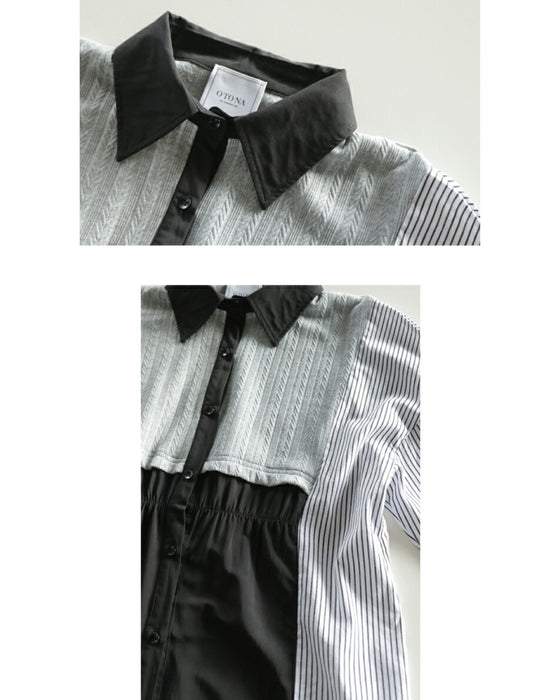 A one-piece look. A shirt with a combination of different materials