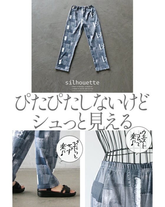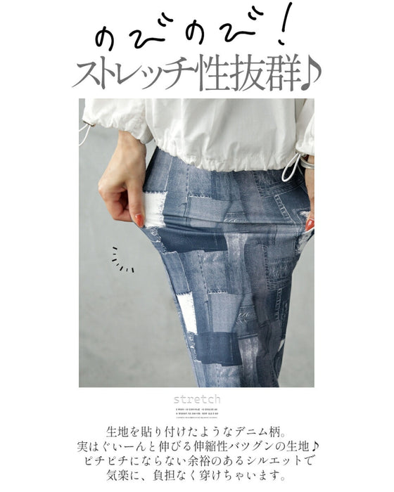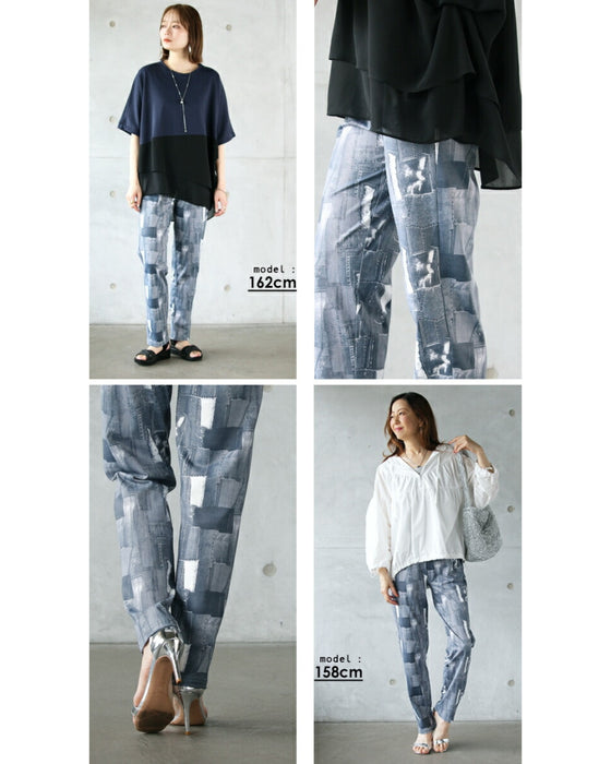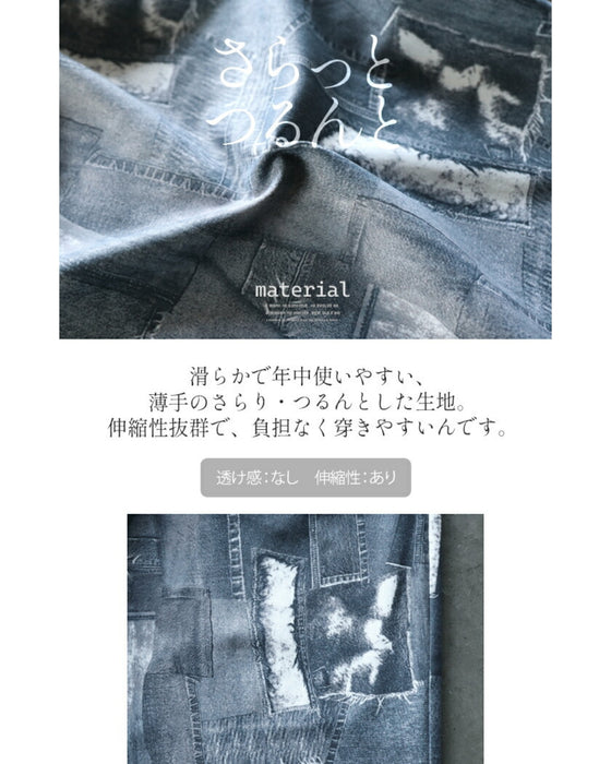Vintage-style patchwork denim is stylish. But because it's printed, it's easy to wear. The straight silhouette is not too tight, but it looks neat and has a slimming effect.
