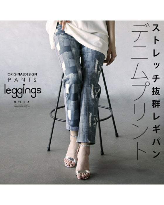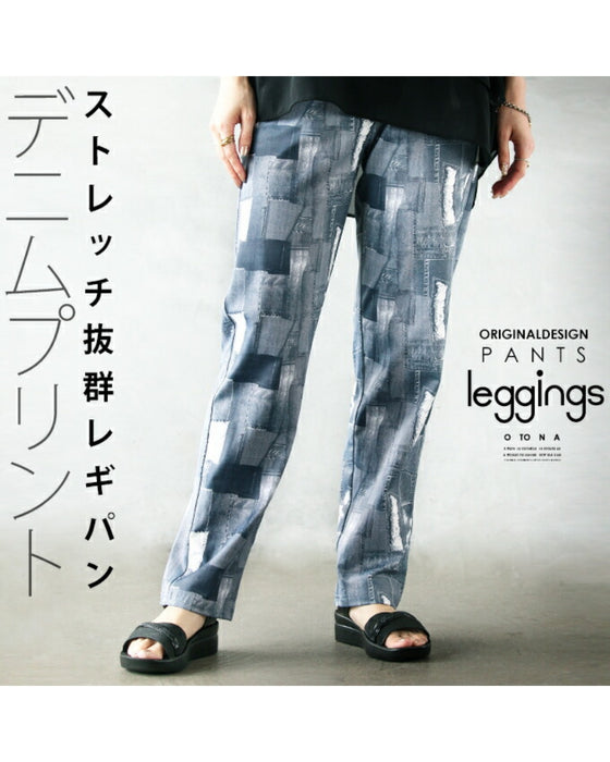 ■ Leggies with a denim print that are easy to handle and highly stretchable.