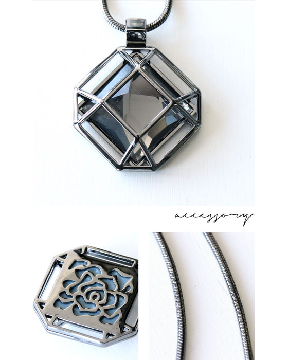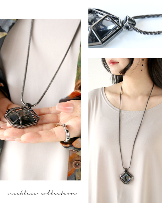 A large necklace that will make you look gorgeous on its own. The glossy black jewels create a rich and sophisticated look with just the right amount of fashion.