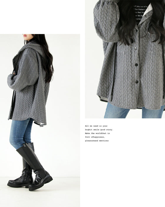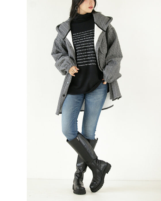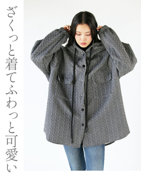 ■A big hoodie made of warm quilted material that is soft and cute when worn loosely.