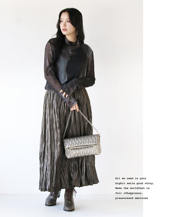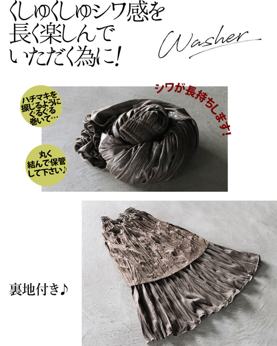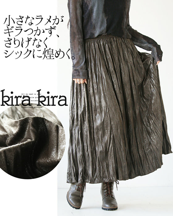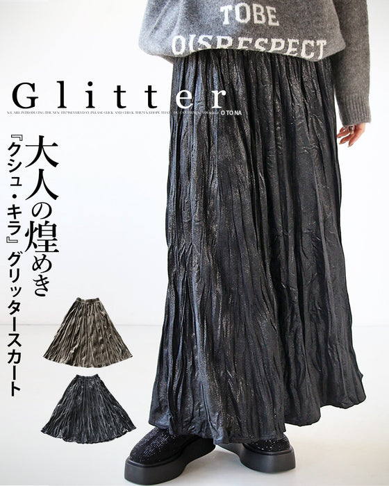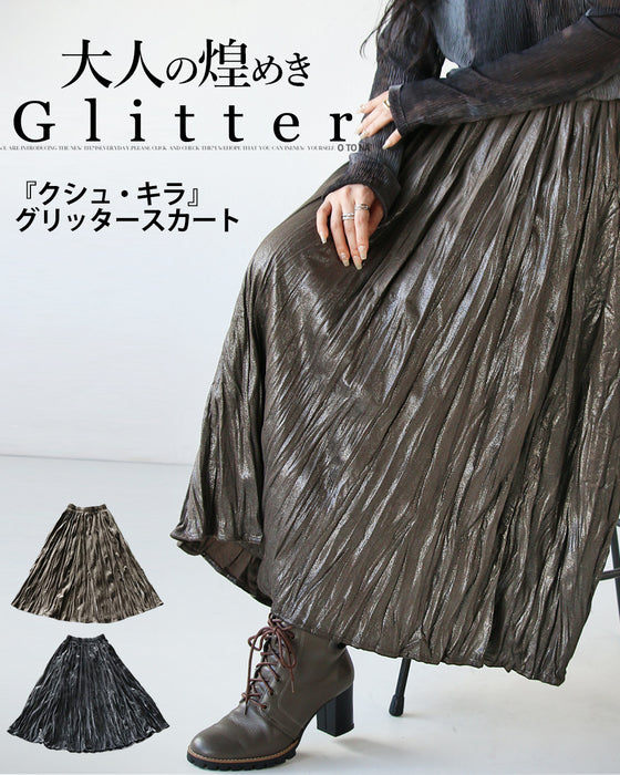 ■A glitter skirt with subtle and chic sparkle without being too dazzling with small glitter. The crinkled texture gives it a sophisticated look with a washer finish, making it the focal point of any "Cush Kira" outfit just by wearing it.
