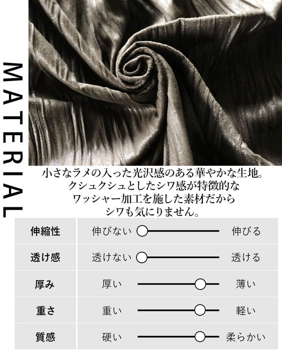 ■A gorgeous fabric with a glossy finish and small glitter. The material has been washed to give it a crumpled, wrinkled look, so you don't have to worry about wrinkles.