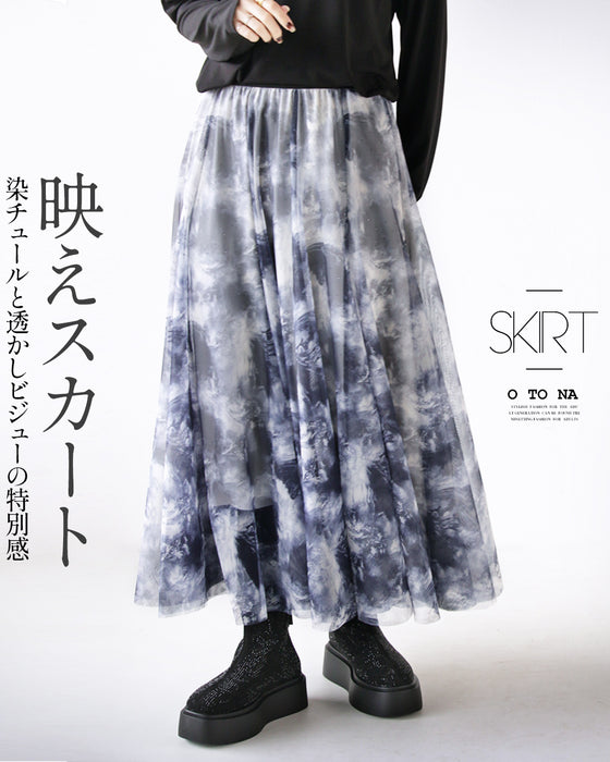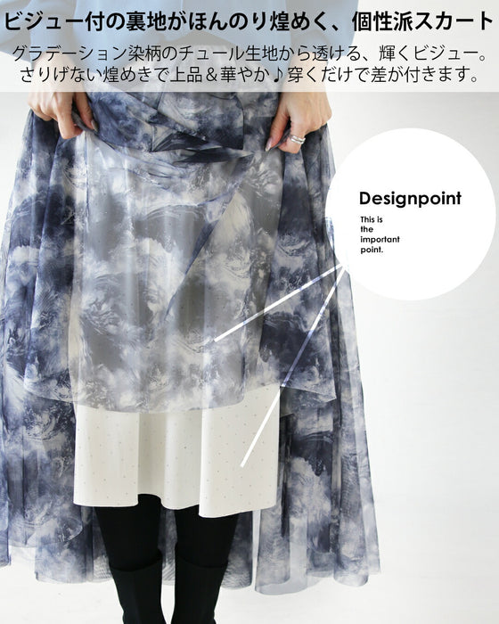 ■The gradation dyed pattern creates a great atmosphere! This original skirt has a lining with jewels that sparkle softly.