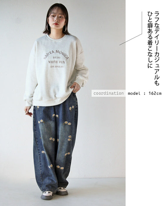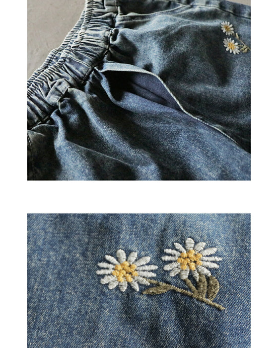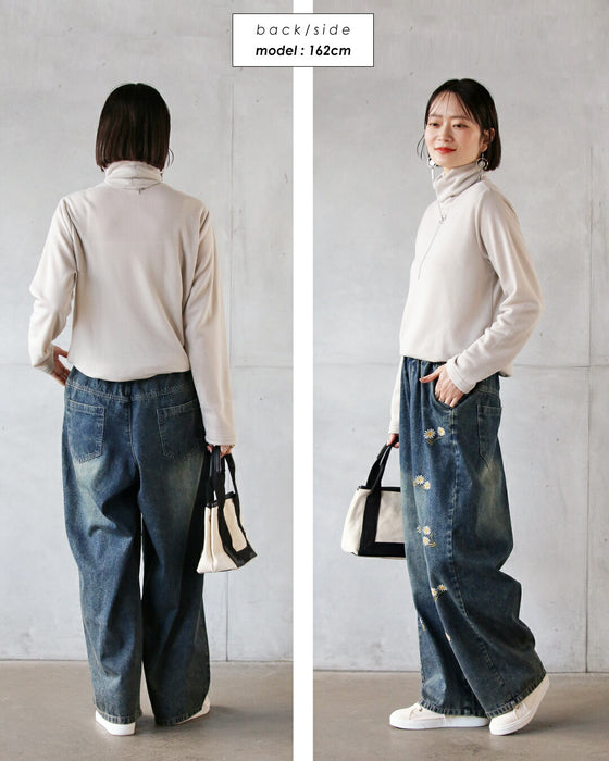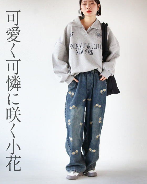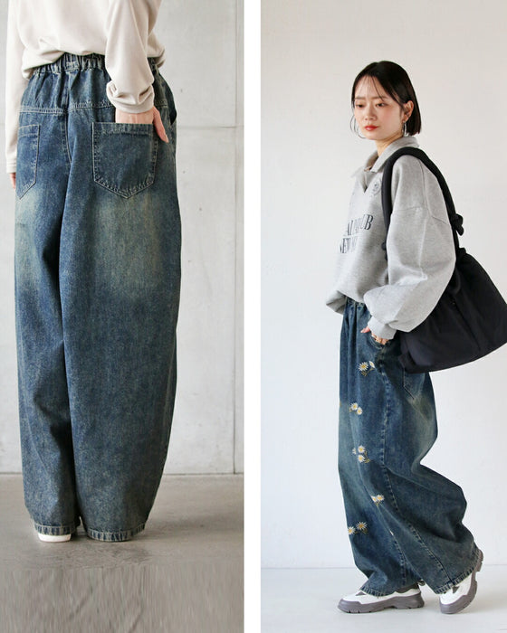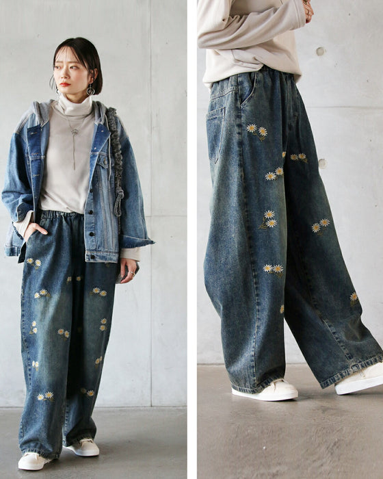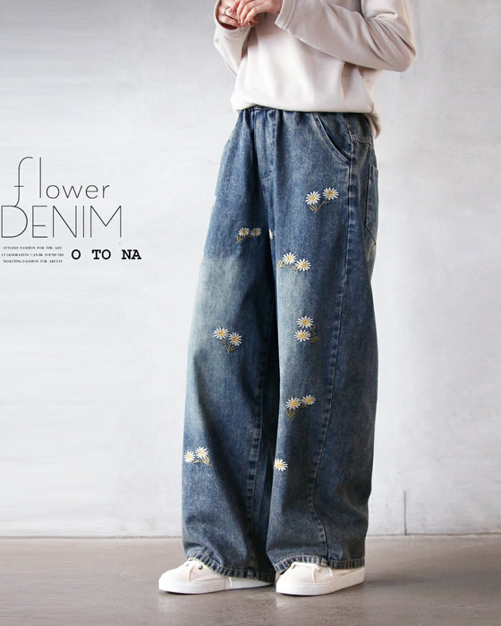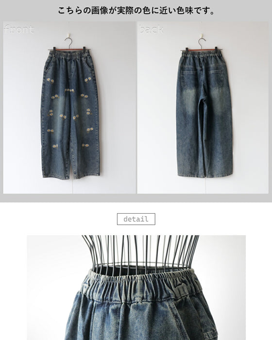 ■The loose silhouette and the cute floral pattern make these denim pants look cute! You're sure to get compliments on them.
