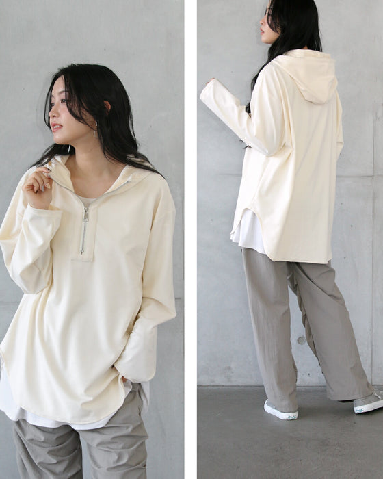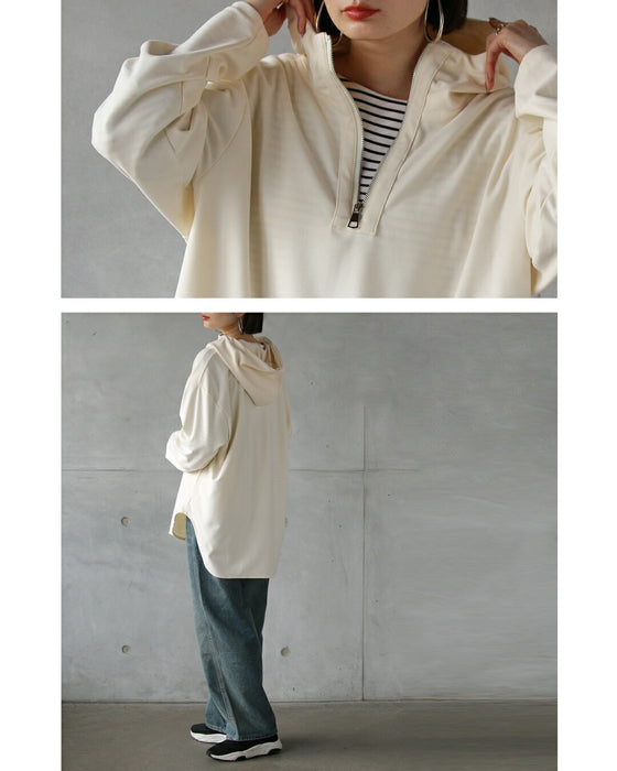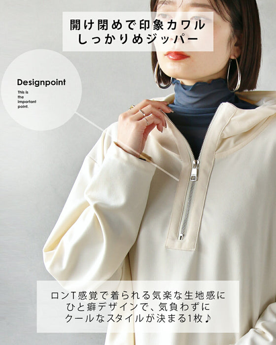 ■フロントのハーフジッパーが効いてる!爽やかでクリーンでクールなデザインパーカーです。