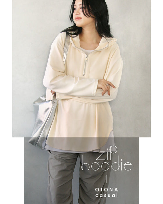 クリーンな大人カジュアル ジッパーデザインパーカー