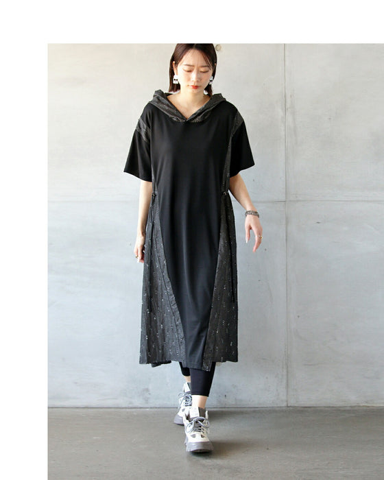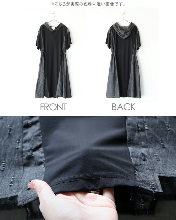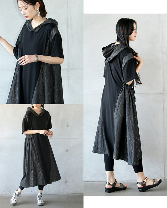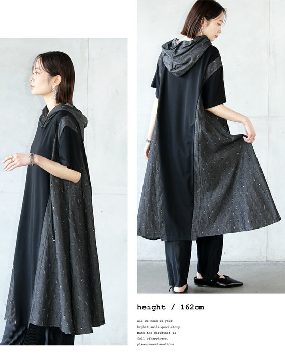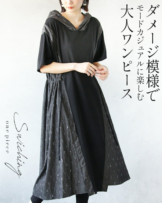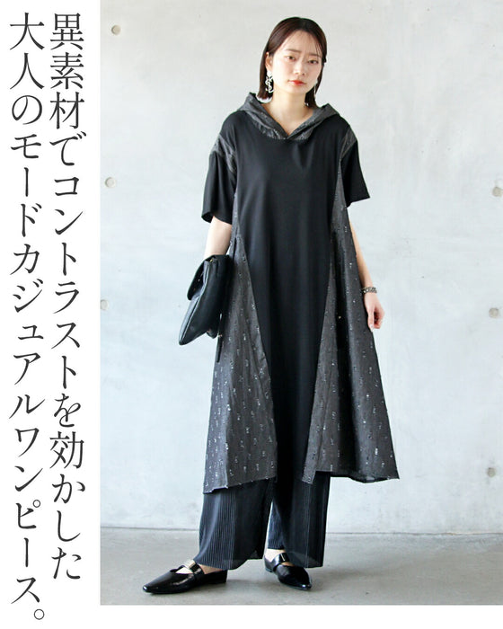 異素材でコントラストを効かした大人のモードカジュアルワンピース。
