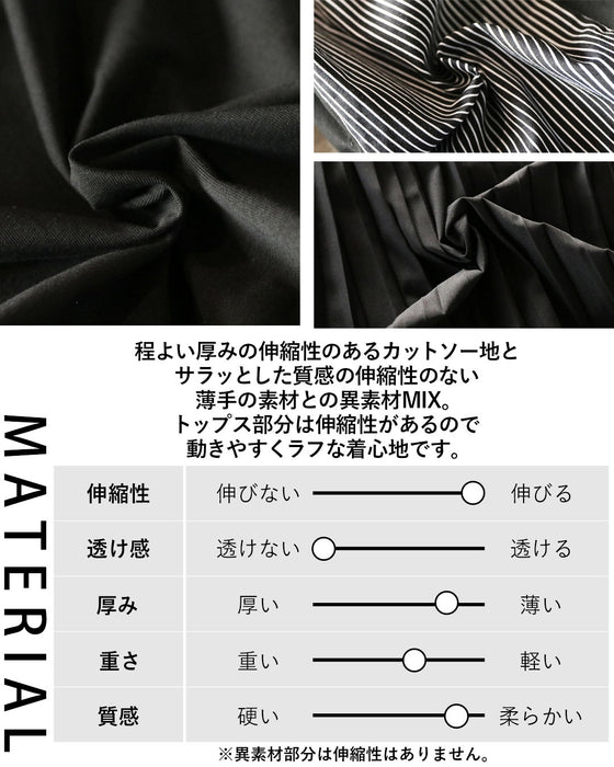 ■程よい厚みの伸縮性のあるカットソー地とサラッとした質感の伸縮性のない薄手の素材との異素材MIX。