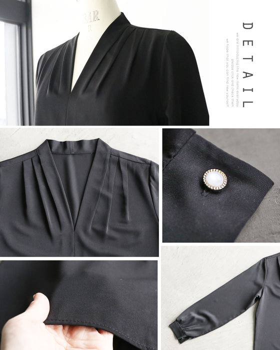 ■大人の着こなしがすっきりキマるVネックとトロン贅沢ドレープが印象的なデザイン。ふわり程よいゆるさがありつつ、落ち感のある素材を使用しているので、華奢見え効果も◎ストンとした落ち感の絶妙バランス。