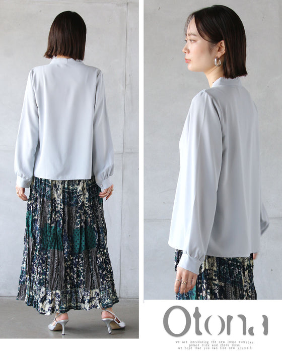 ■普段使いからオフィス、ライトなパーティーシーンまで大人レディのデイリーコーデにオススメのきれいめブラウス。軽やかな素材感で着膨れ感なくジャケットインでもすっきり!