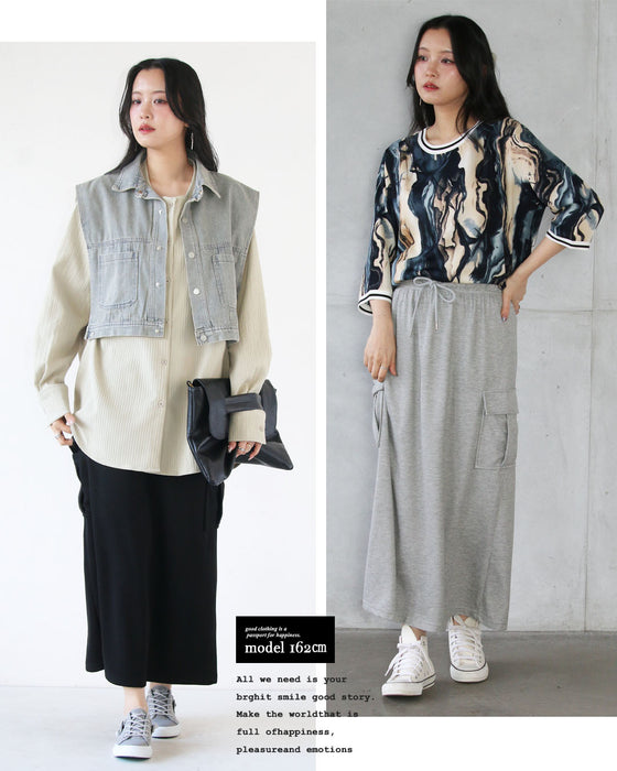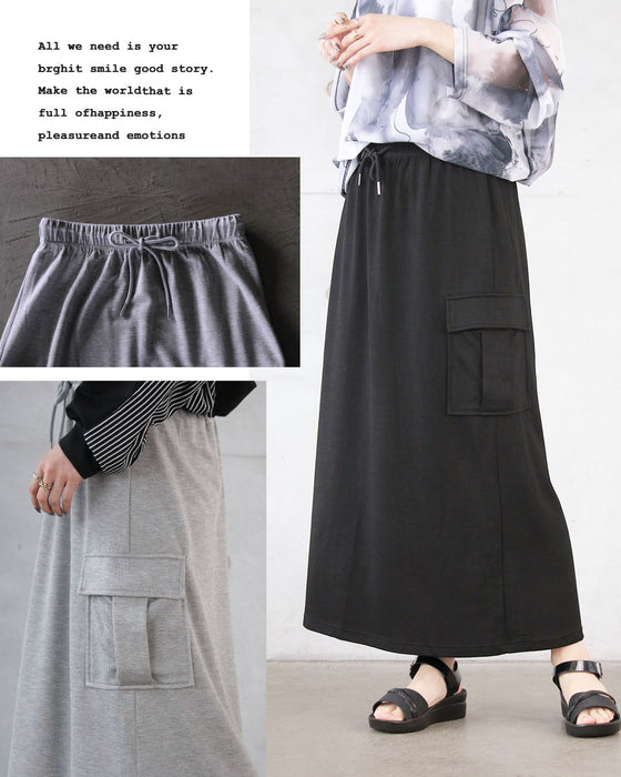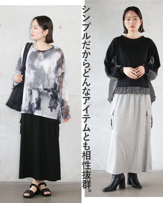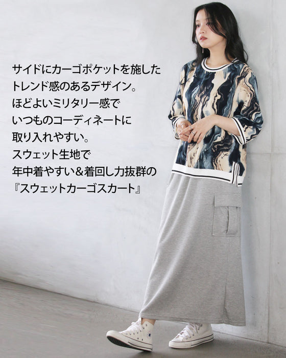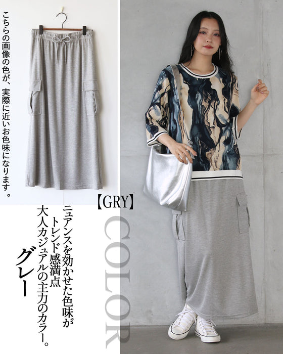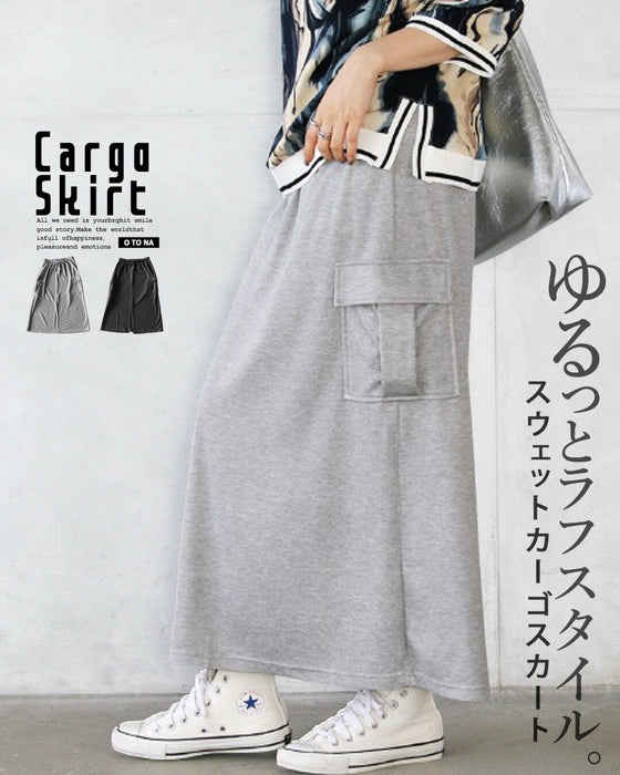 ■サイドにカーゴポケットを施したトレンド感のあるデザイン。ほどよいミリタリー感でいつものコーディネートに取り入れやすい。スウェット生地で年中着やすい&着回し力抜群のスウェットカーゴスカート