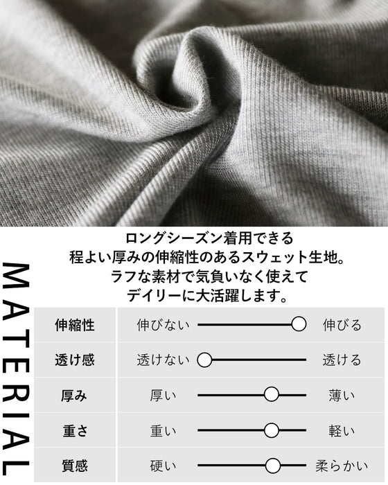 ■ロングシーズン着用できる程よい厚みの伸縮性のあるスウェット生地。ラフな素材で気負いなく使えてデイリーに大活躍します。