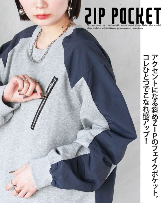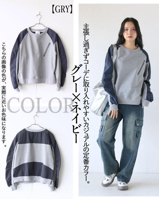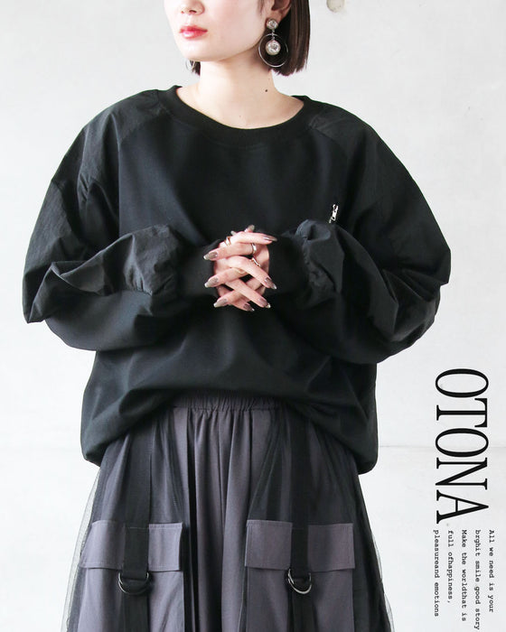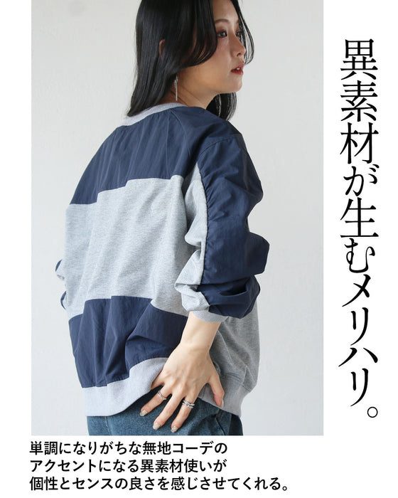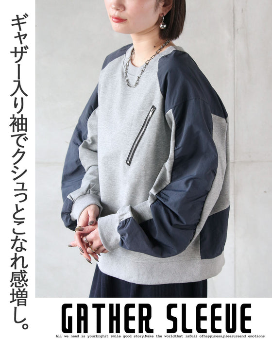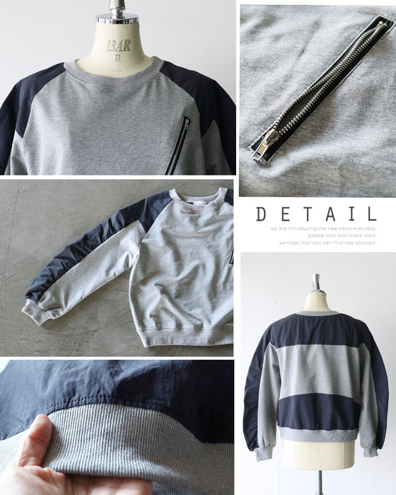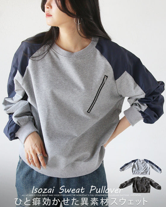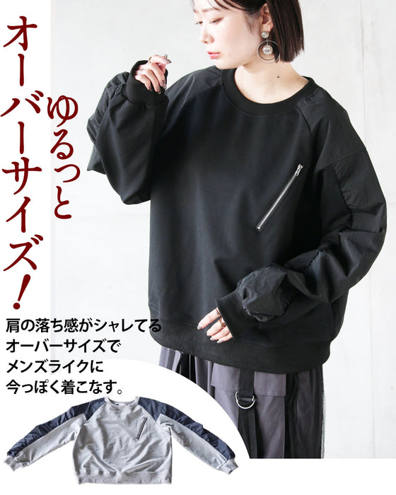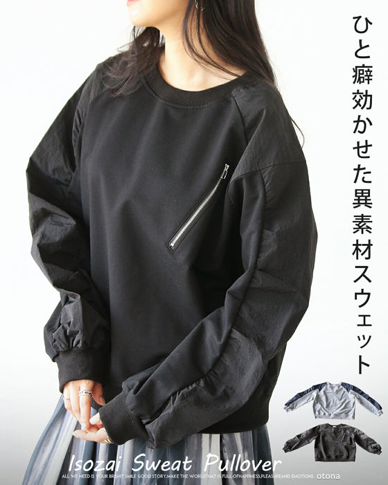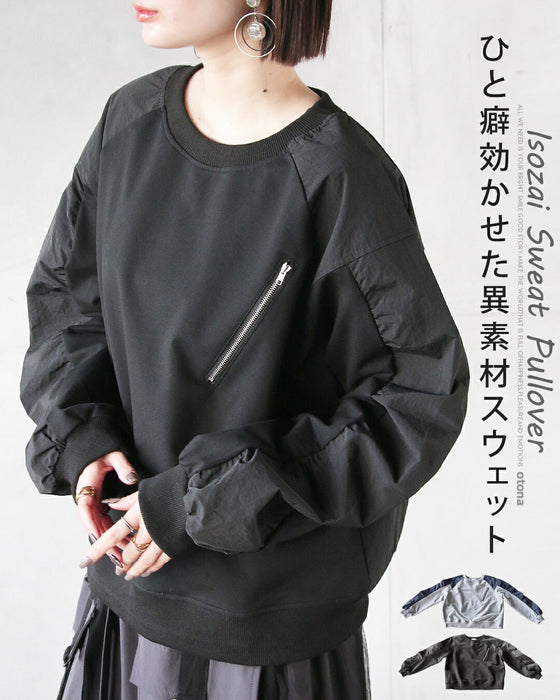ひと癖効かせた異素材スウェットトップス