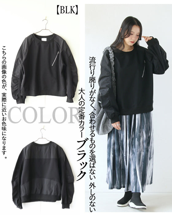 ■ギャザー入りのクシュ感のある袖や、アクセントになる斜めZIPのフェイクポケット。こなれ感アップのディテールデザイン!