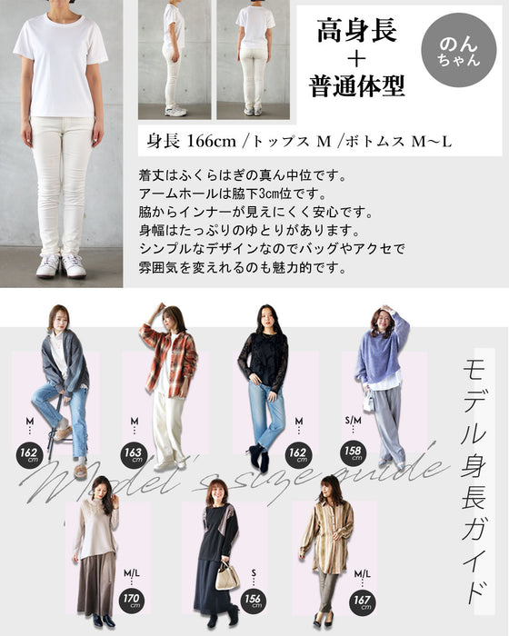 肩からストンと落ちるIラインが身体のラインを拾いにくく、体型をさりげなくカバー。動きに合わせて生地が揺れる軽やかさも魅力です。リラックス感がありつつ、だらしなく見えない絶妙なバランスです。