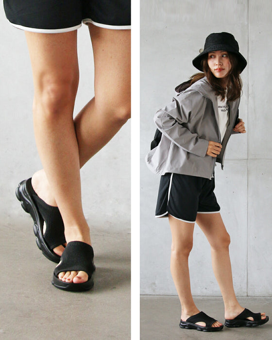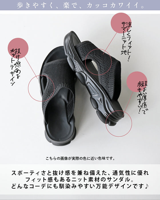スポーティさと抜け感を兼ね備えた、通気性の良いニット素材のサンダル。肌がほどよく覗くカットデザインが、涼しげで軽やかな印象に。
