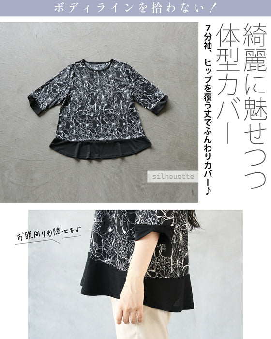 裾のフレアなラインが自然に腰まわりをカバーし、着るだけでスタイルアップが叶う一枚。 七分袖で手首を見せつつ、抜け感も演出でき、アクセサリーとの相性も抜群!デイリーからオフィスコーデまで活躍してくれます。