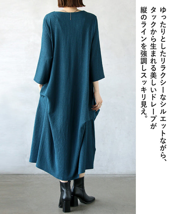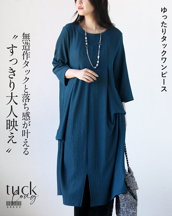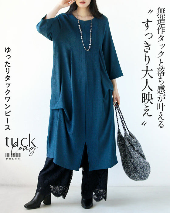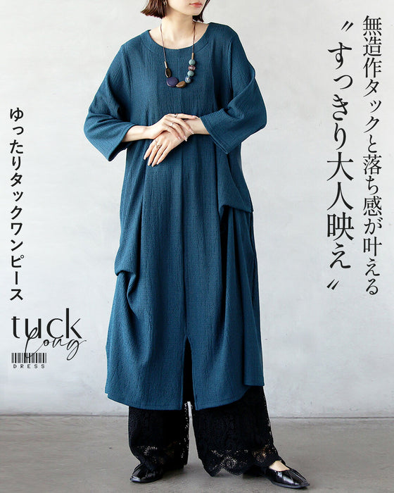 無造作タックと落ち感が叶えるすっきり大人映え。 ゆったりタックワンピース