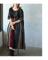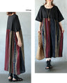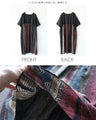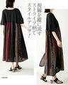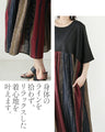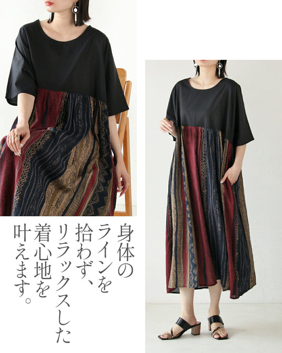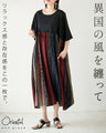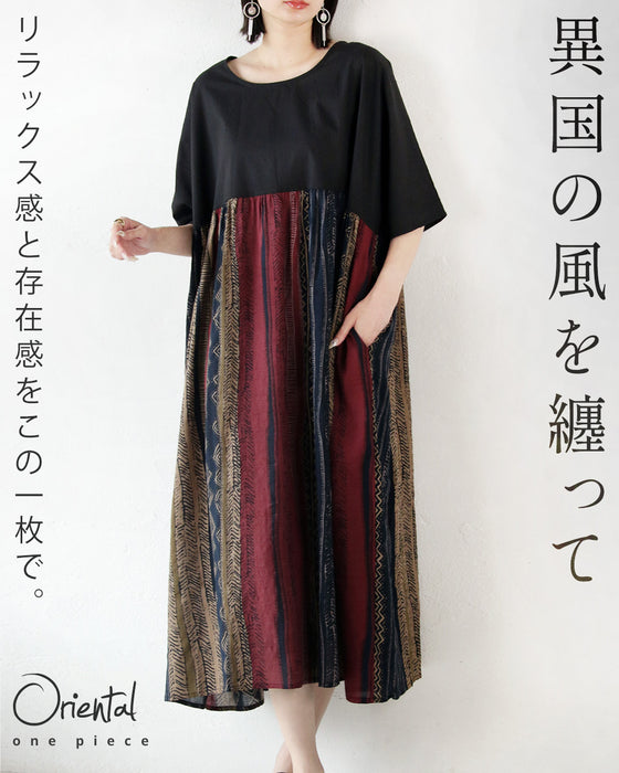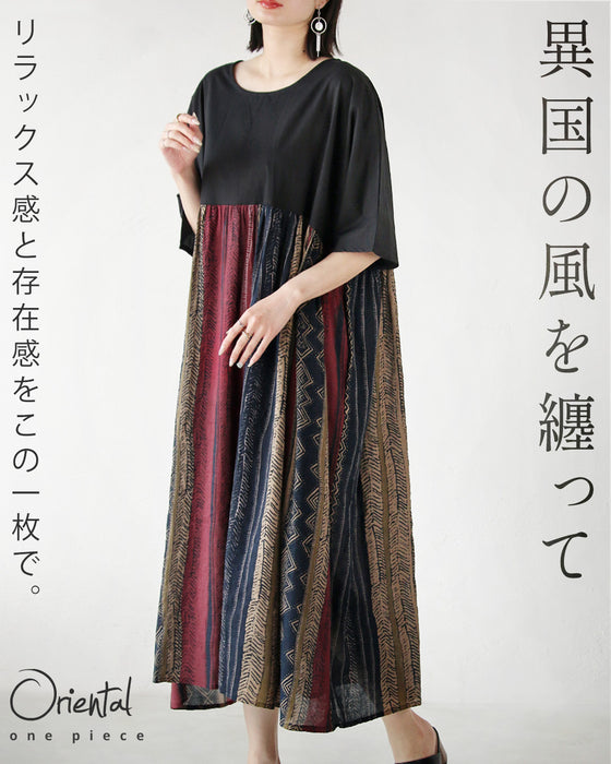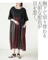 スカート部分にはエスニックテイストを感じさせる縦のストライプ柄を組み合わせた切替デザイン。